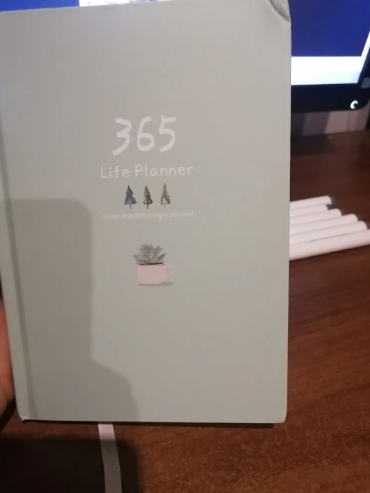 Я люблю это! Это как указано на фотографиях и в описании. Может быть, единственным недостатком является то, что я представлял его больше, но в остальном отлично. У него есть несколько вещей, которые я показываю на фотографиях, таких как актуальный, повседневный и ежедневный план, 21 день плана и несколько пустых листов с рисунками в режиме ноты. У него очень хорошая толщина, и его роль действительно сильный. Я прибываю вовремя, но правда была в том, что ожидание XD было немного тяжелым.