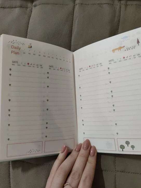 Милые книги. Идеальный размер для сумки. Записная книжка, планировщик или дневник. Красивые рисунки. Не лежит на плоской подошве, но предыдущие отзывы описаны точно, поэтому товар был таким, как ожидалось.
