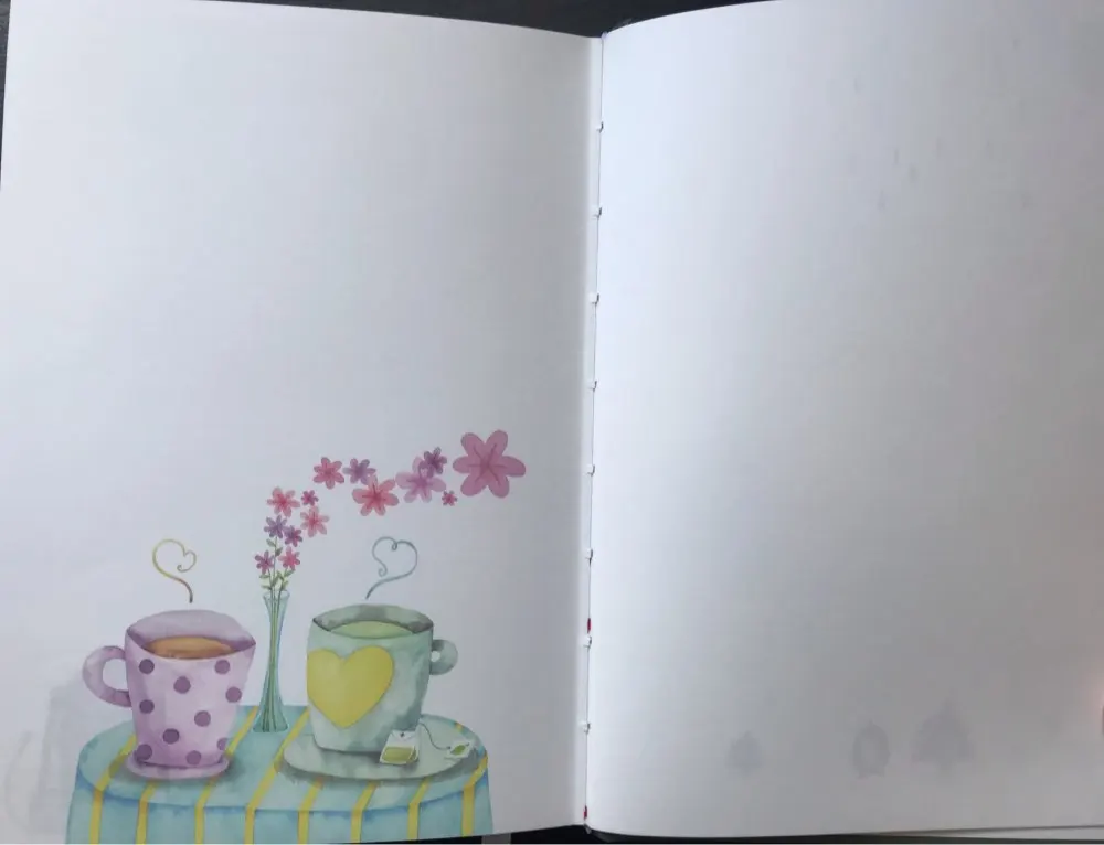 Очень милый дизайн, красочные визуальные изображения на странице. Бумага довольно тонкая и слегка просвечивается, поэтому Толстая ручка может быть видна через страницы. Хороший размер, кажется A5.