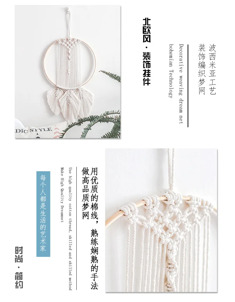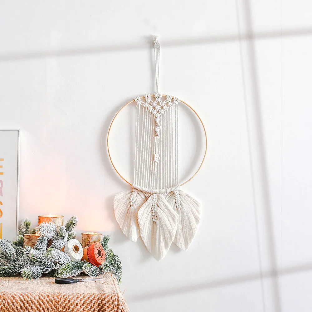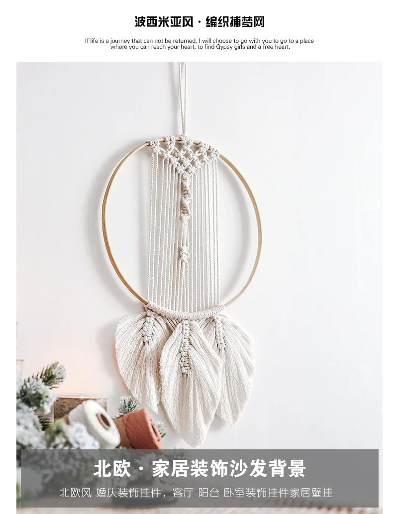 Богемный гобелен, настенный Ловец снов, листья в скандинавском стил...