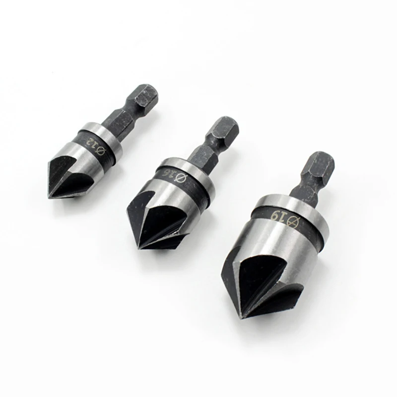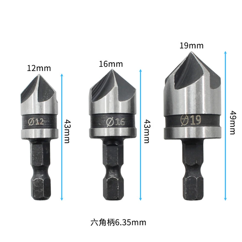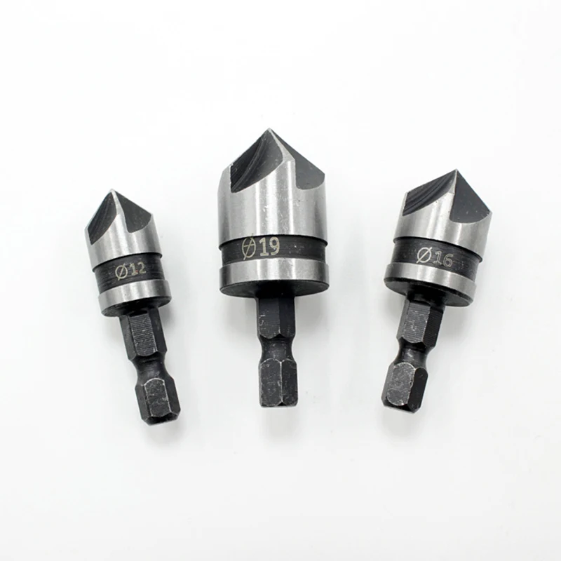 Набор сверл с зенкером Mayitr, комплект из 3 шт.компл. сверл для снятия фаски по дереву и металлу, 12 мм, 16 мм, 19 мм, 90 градусов