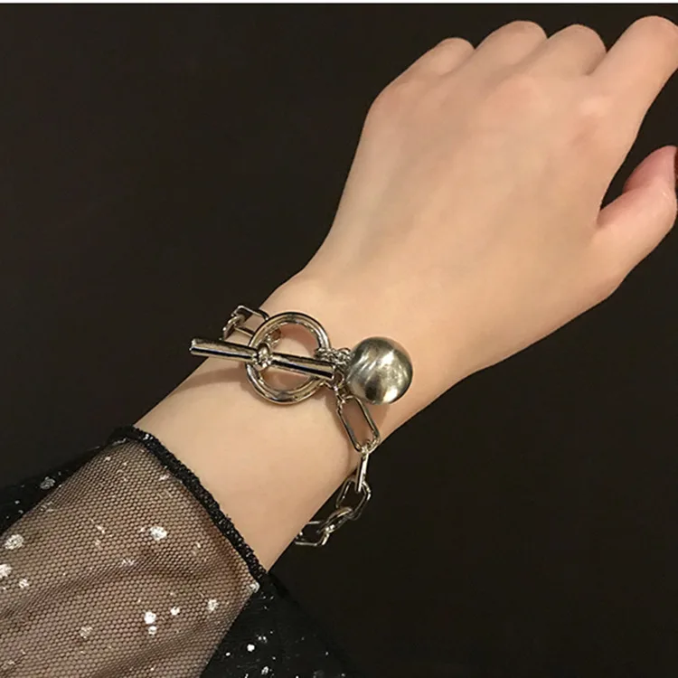 Длина ожерелья: 44 смРазмер шара: 2 смДлина браслета: 19 смKMVEXO, новинка 2020, трендовая толстая цепочка с замком, металлический шар, ожерелье для женщин, девушек, хип-хоп, панк, готика, пара, для мужчин, для вечеринки, ювелирное изделие, подарок