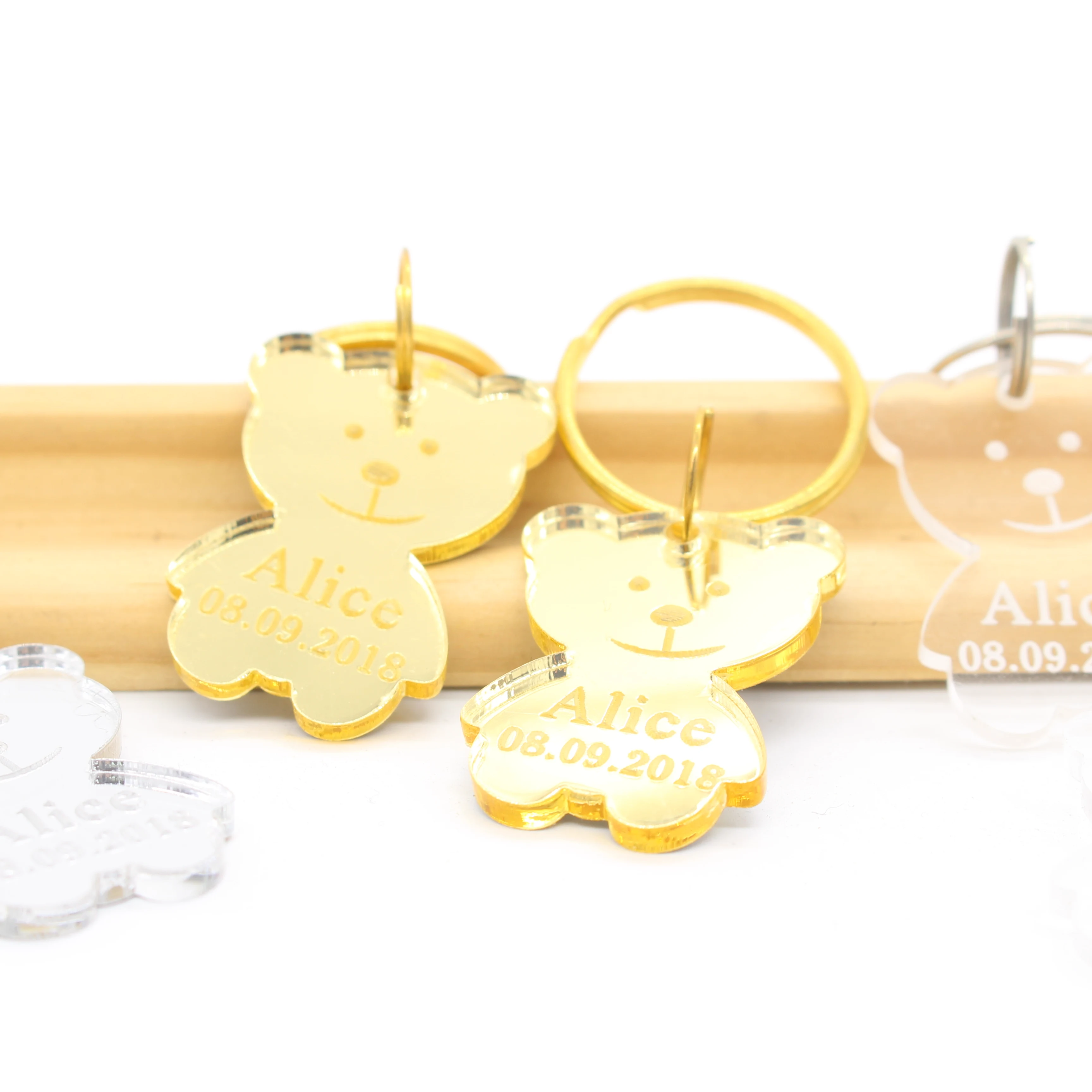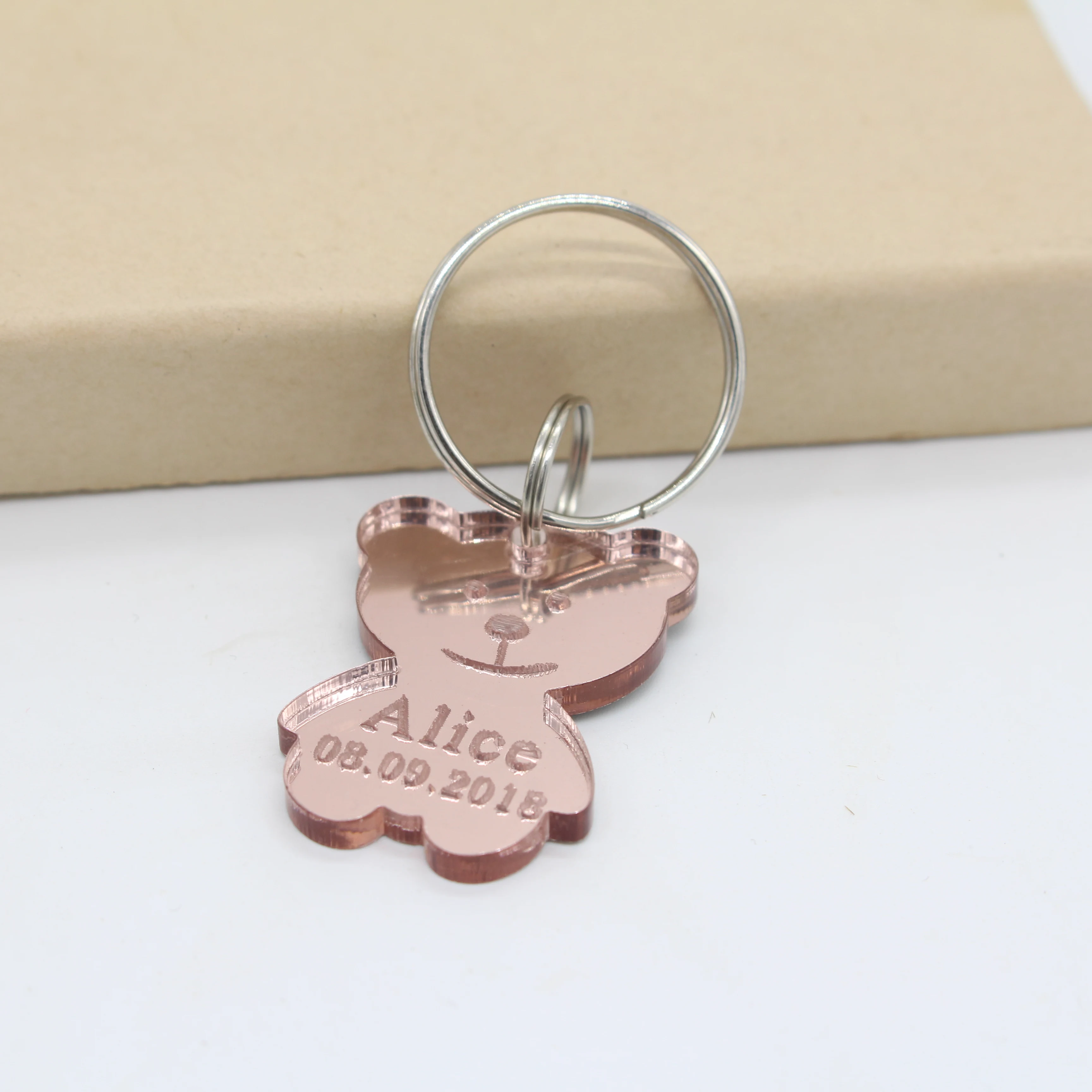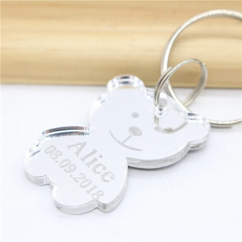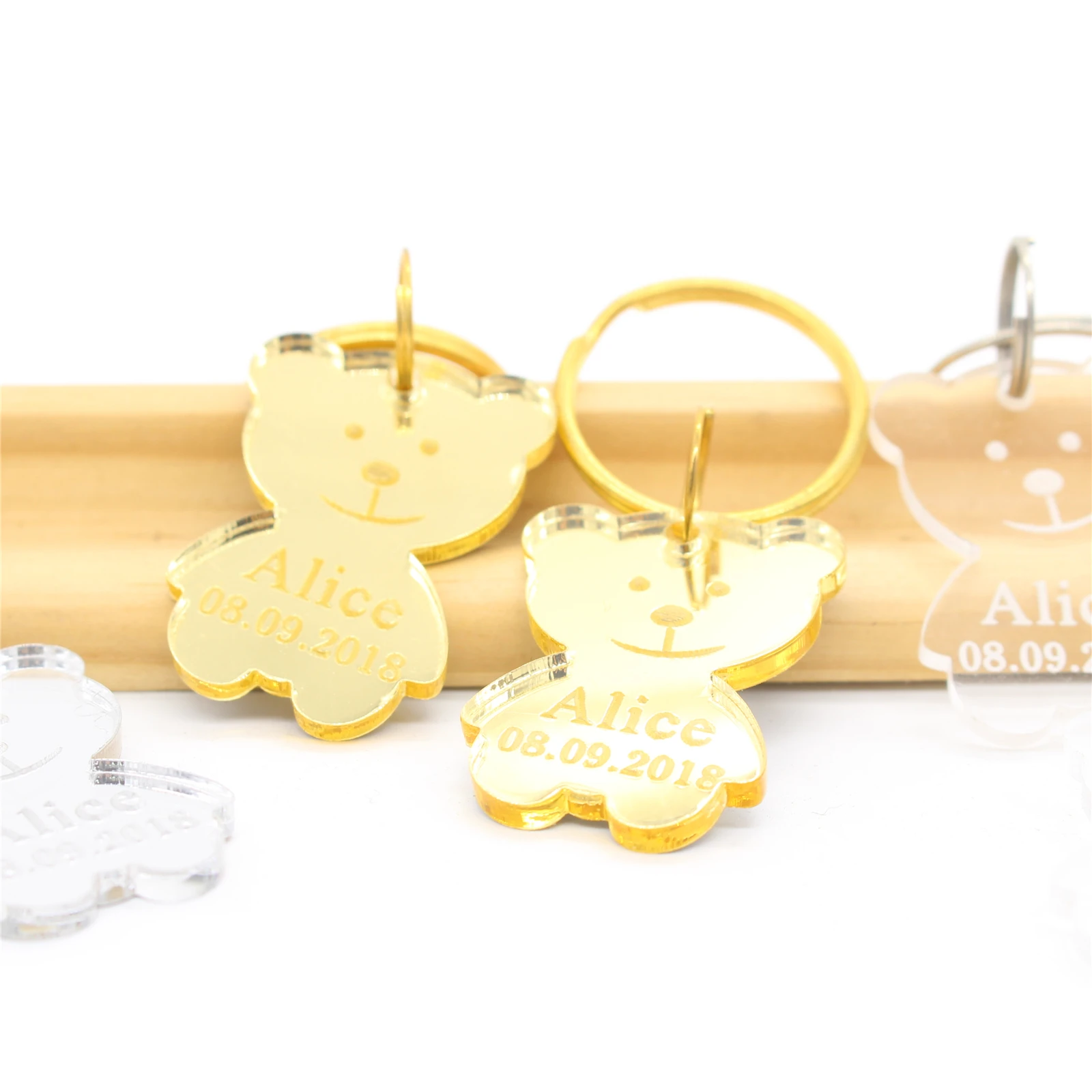 30x персонализированные лазерные гравированные серебряные зеркальные мишки брелок на день рождения вечерние сувениры по индивидуальному заказу Baby Shwer Подарки Брелок сувенир