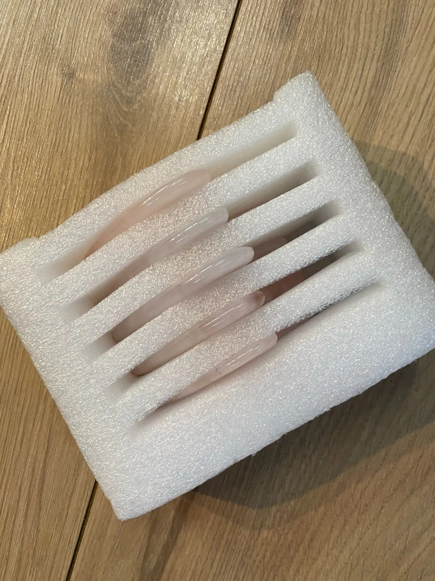 Очень хорошо упакованы. Розовый кварц, тяжеленькие и прохладные, все без брака. Спасибо большое продавцу! Немного разные по размеру, но это некритично