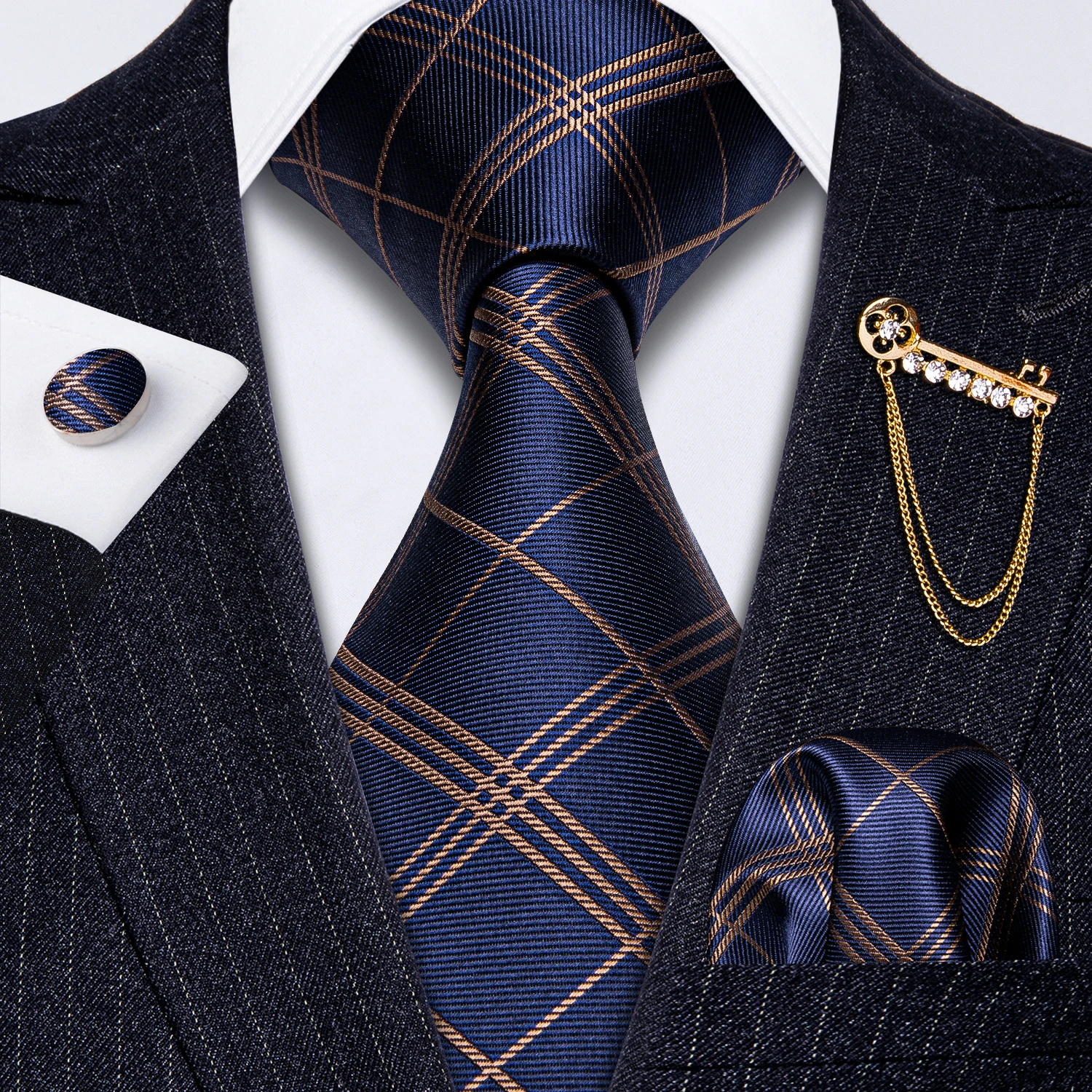 Модный золотой клетчатый мужской галстук-брошь набор шелковый галстук для мужчин подарки платок запонки набор Барри. Ван дизайнерский галстук GS-5233