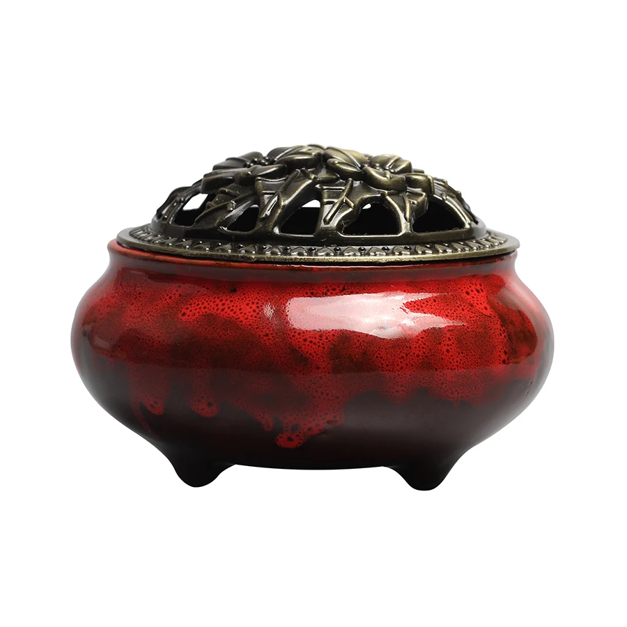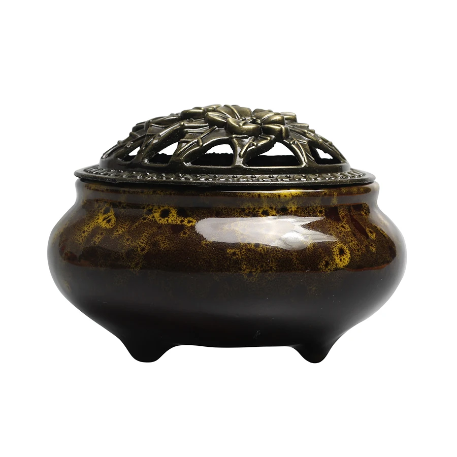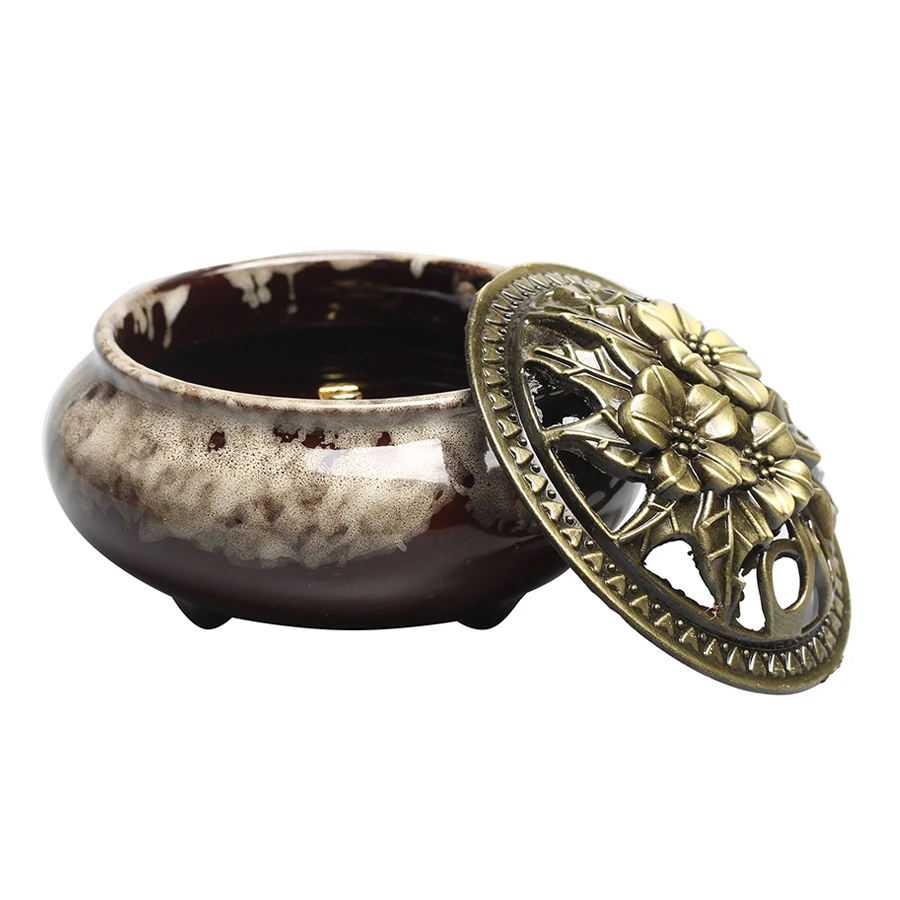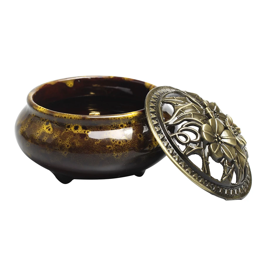 Керамическая горелка для благовоний с медным покрытием, керамическая горелка для палочек, антикварный держатель для благовоний из сандалового дерева, поделки для дома дзен