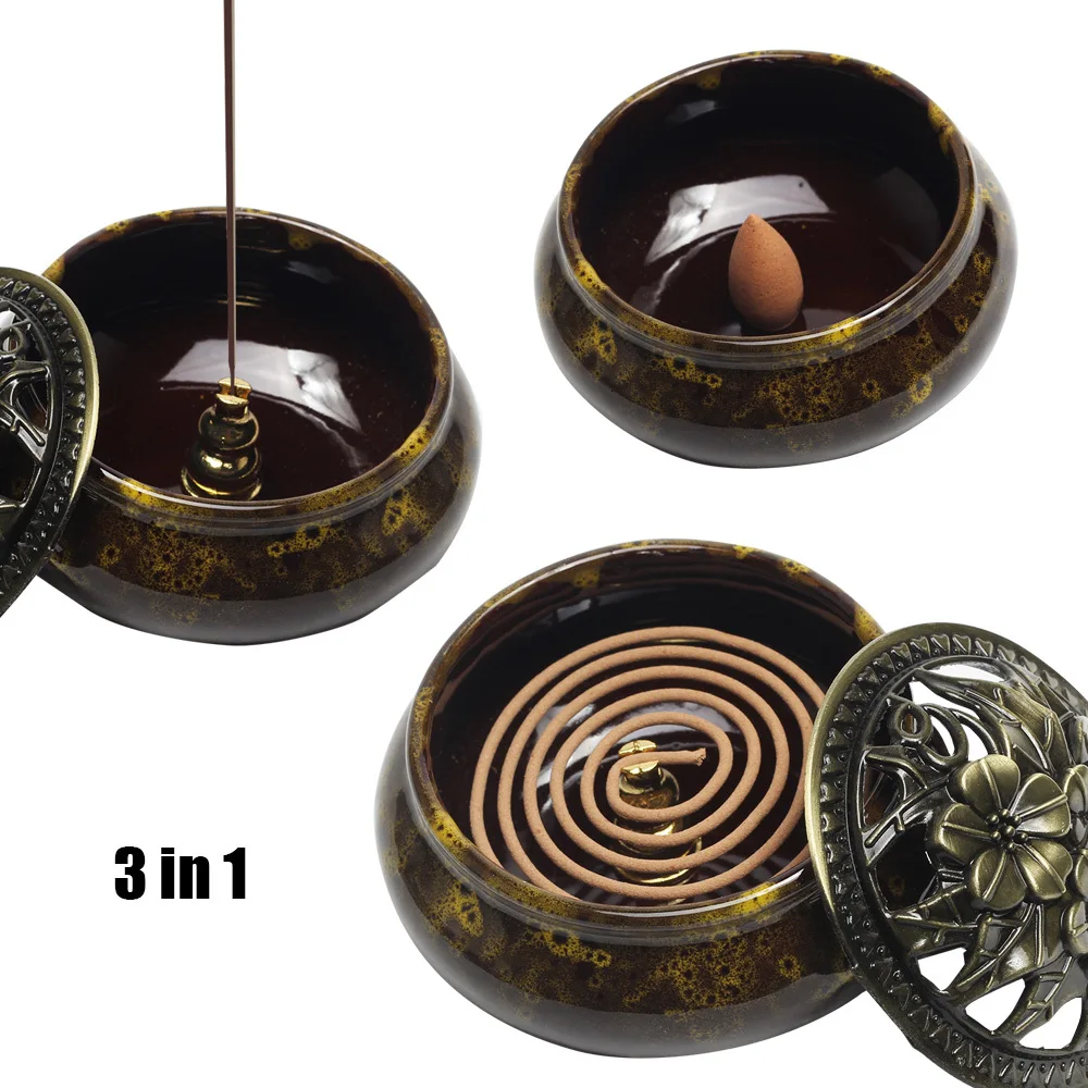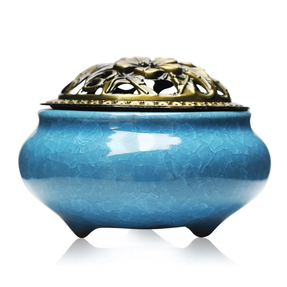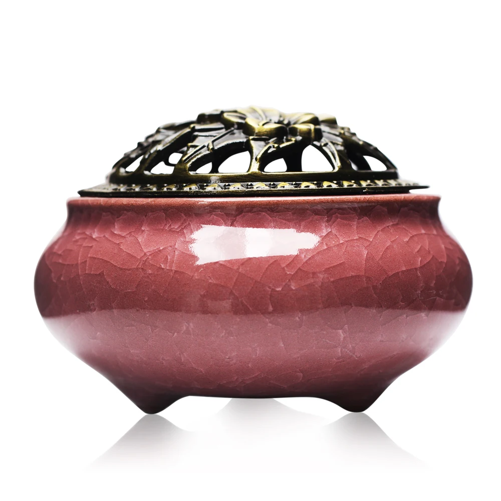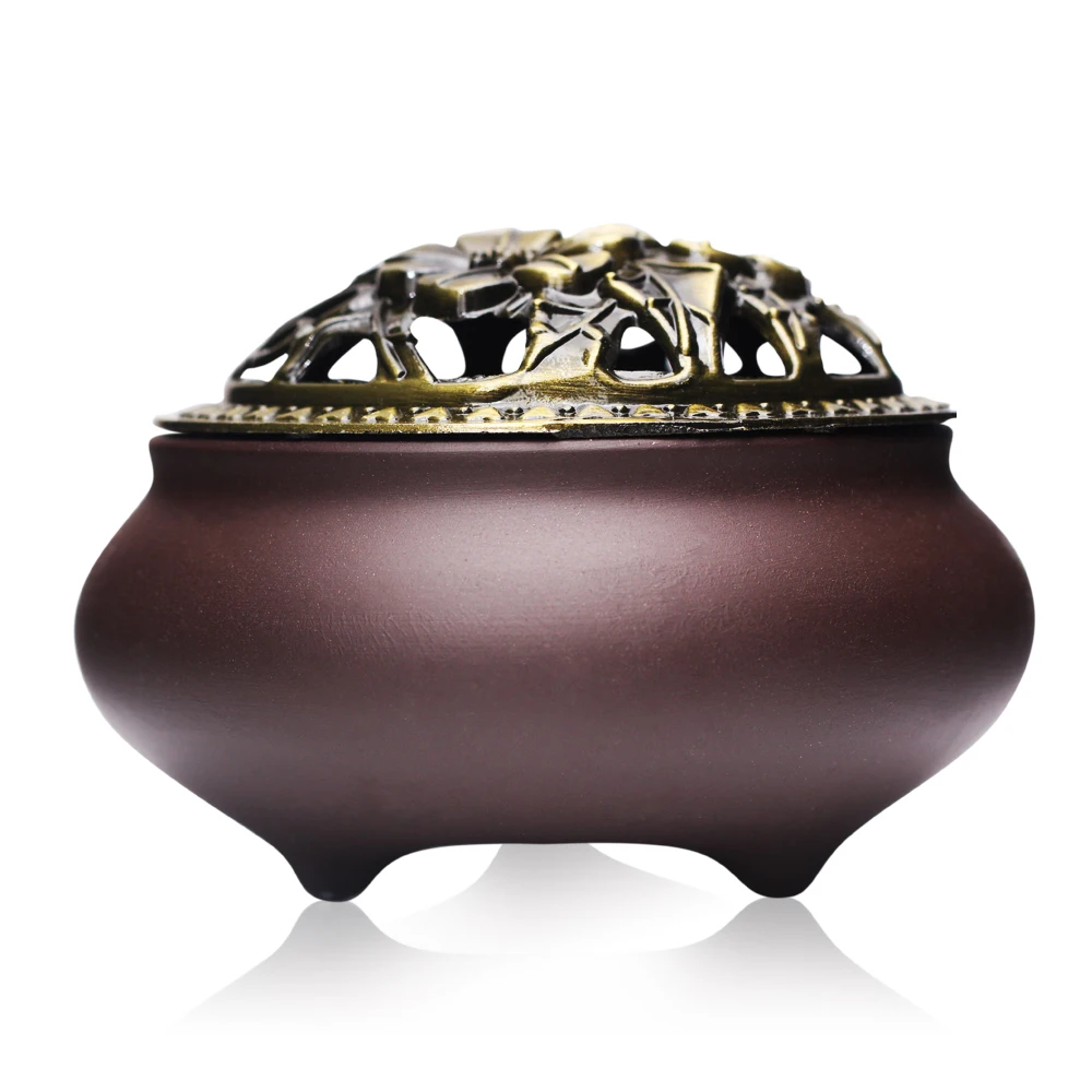 Керамическая горелка для благовоний с медным покрытием, керамическая горелка для палочек, антикварный держатель для благовоний из сандалового дерева, поделки для дома дзен
