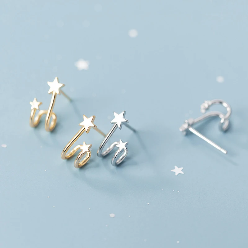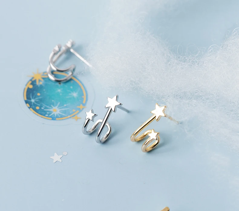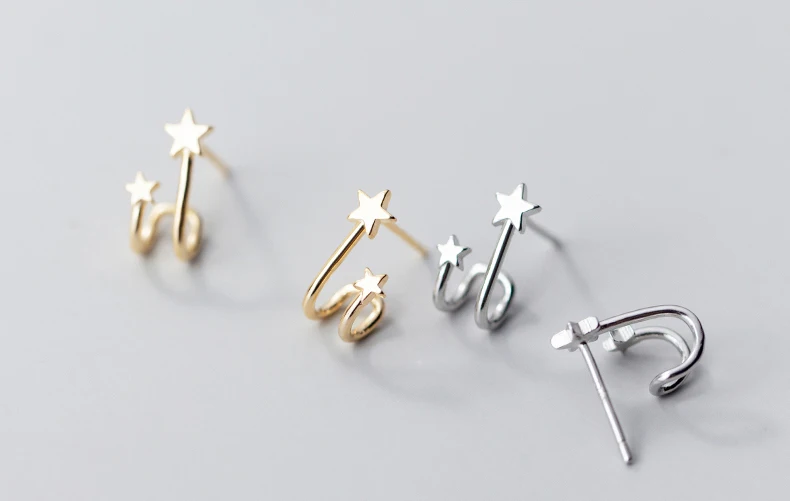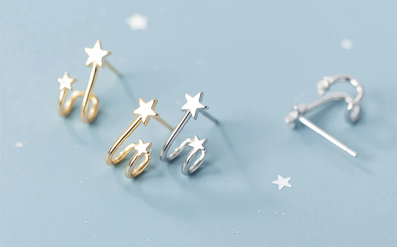 Женские серьги из серебра 100% пробы с маленькой звездой и косточками