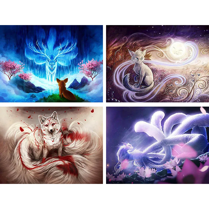 Полноразмерная Алмазная 5d картина сделай сам, девяттихвостая лиса, полноразмерная круглая Алмазная вышивка, Мультяшные животные, мозаичные стразы, украшение для дома W16