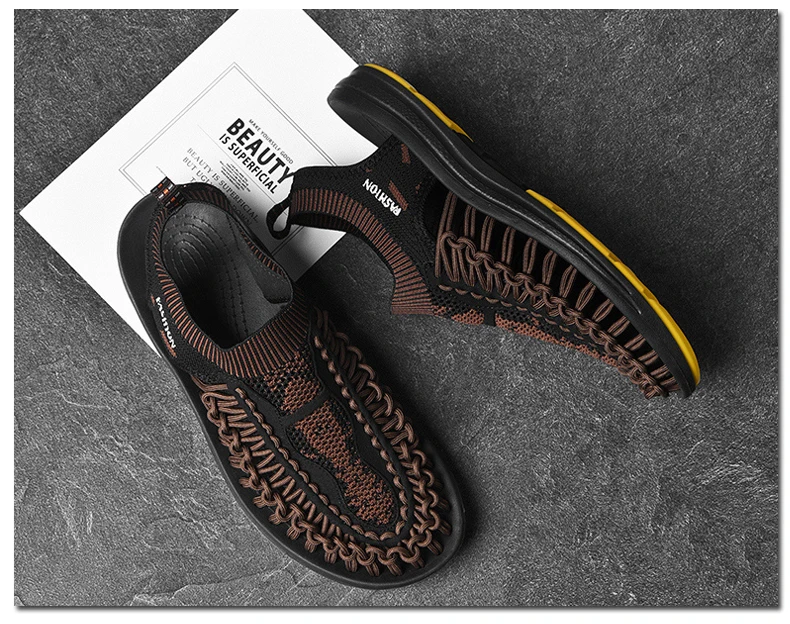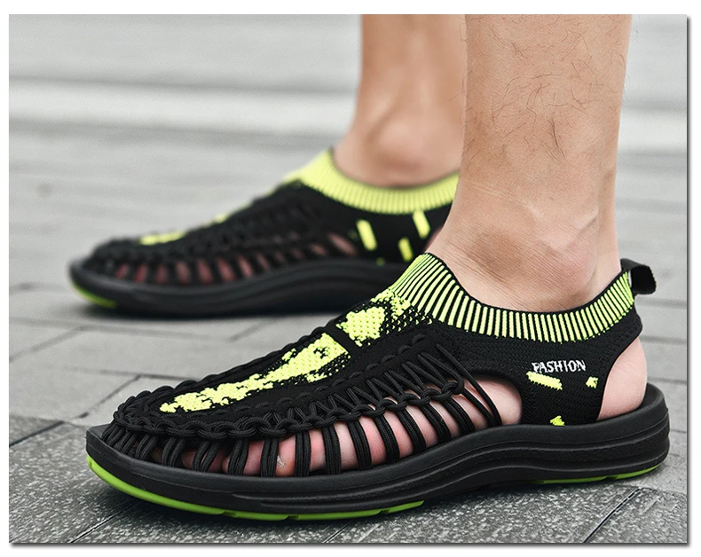Сандалии ysoотносительные мужские, дышащая пляжная обувь, плетеный ...
