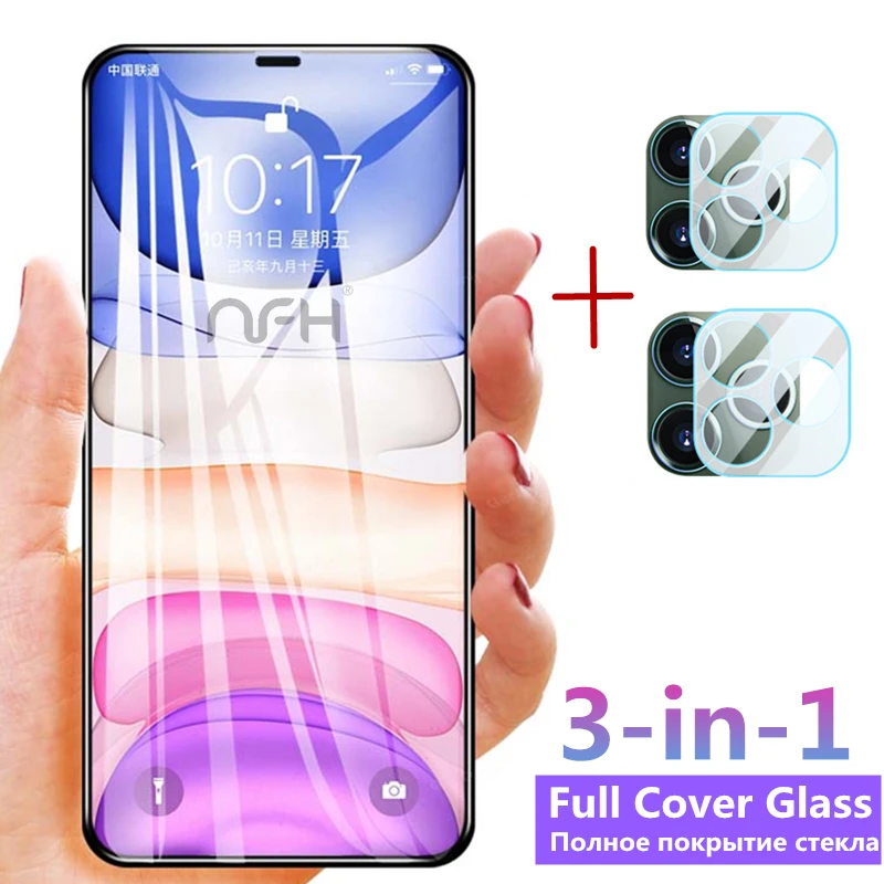 Защитное стекло, закаленное стекло 3 в 1 для iPhone 6, 6S, 11 Pro, Max, 7, 8 Plus, iPhoen, 11 Pro, XR, XS Max