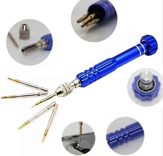 Ручка отвертки для ремонта часов, с 5 запасными насадками, 1 шт.