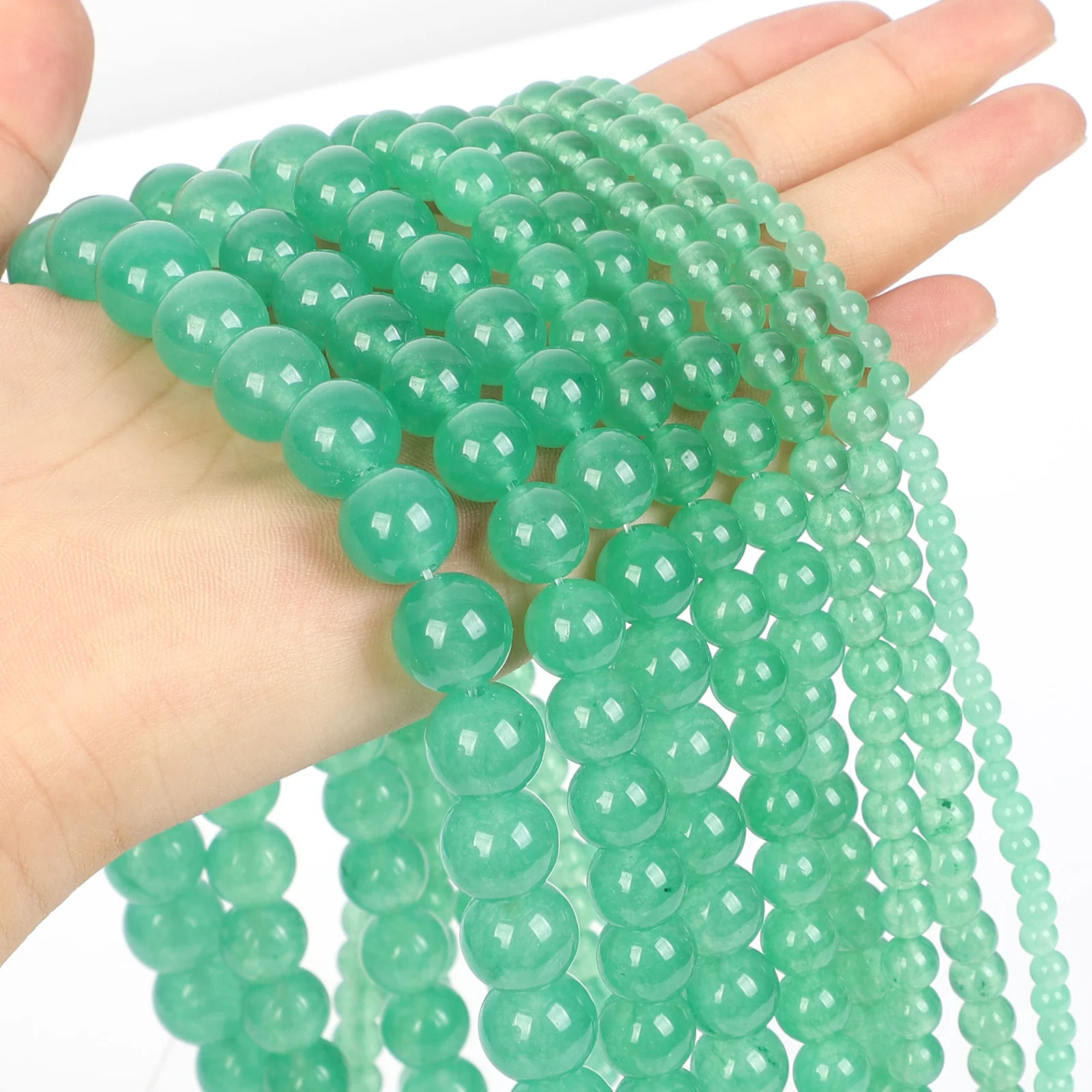 Очаровательные Круглые бусины из натурального камня зеленого авантюрина, очаровательные бусины из халцедона для изготовления ювелирных изделий, нитка 4-12 мм