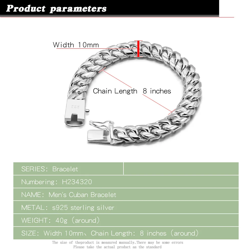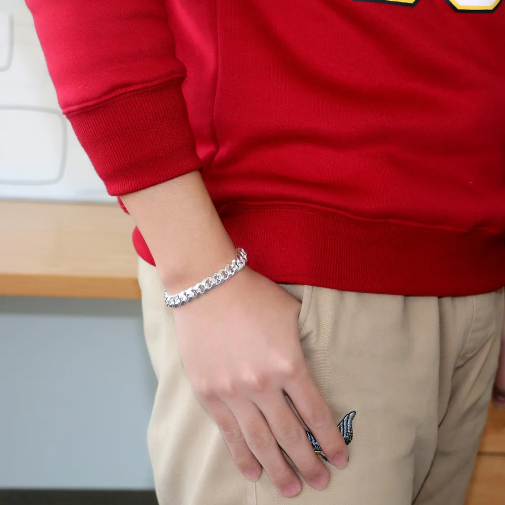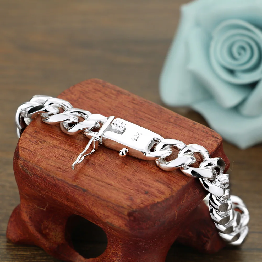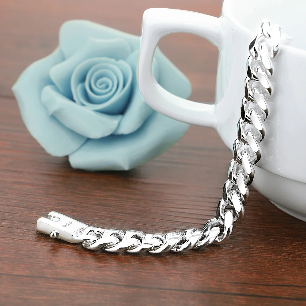 Модные 925 стерлингового серебра браслет для мужчин мужские звенья в Кубинском стиле ручная цепная аксессуары пара личность мужские ювелирные изделия, подарки на Рождество