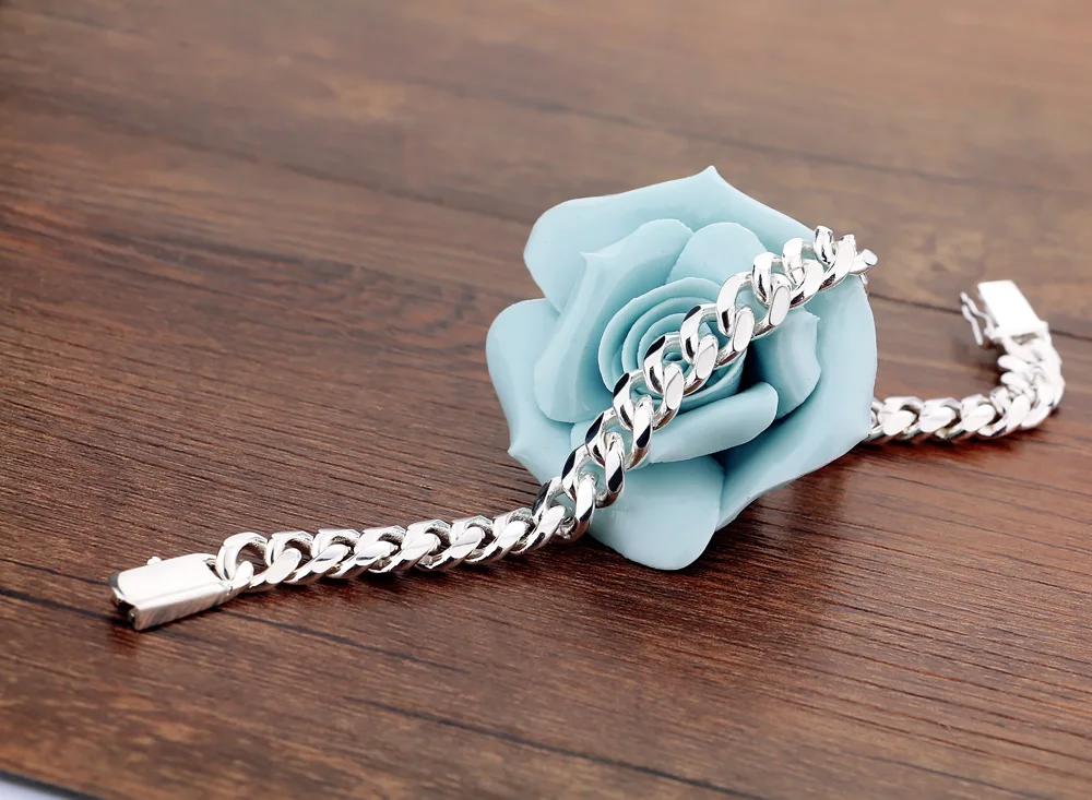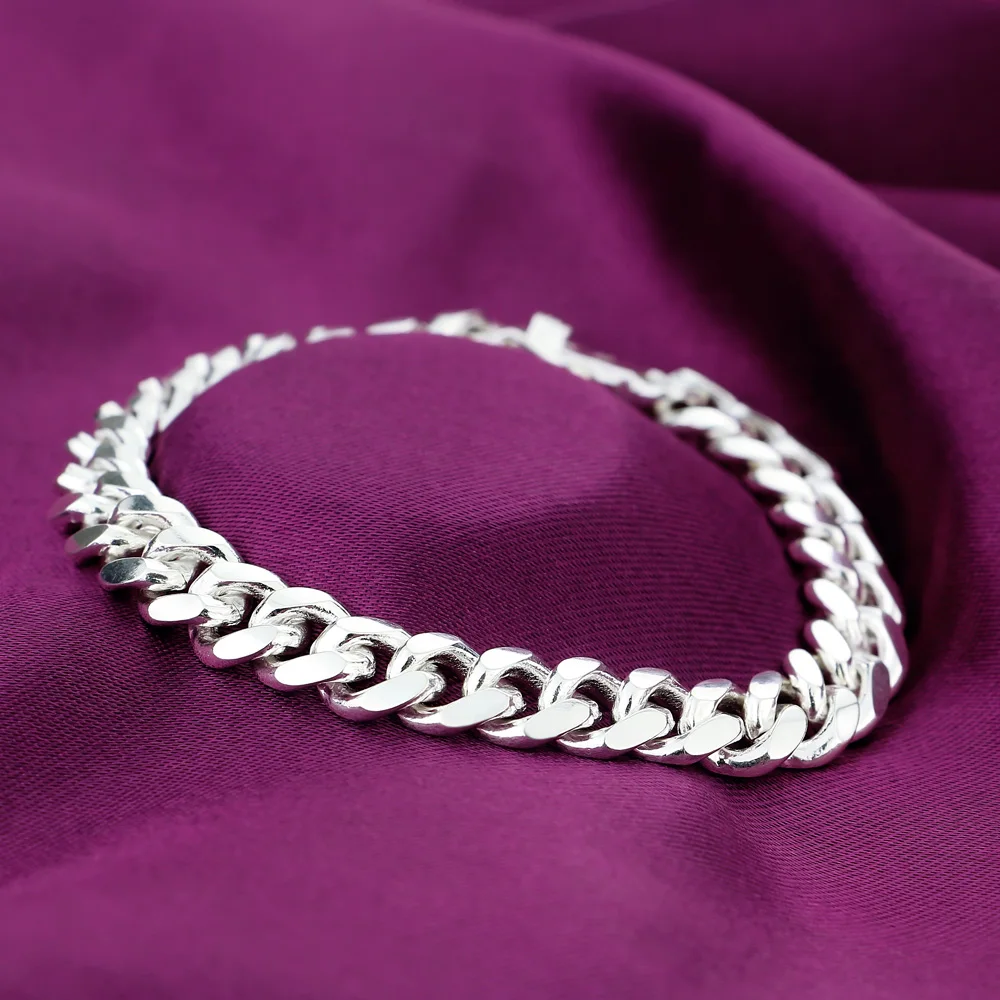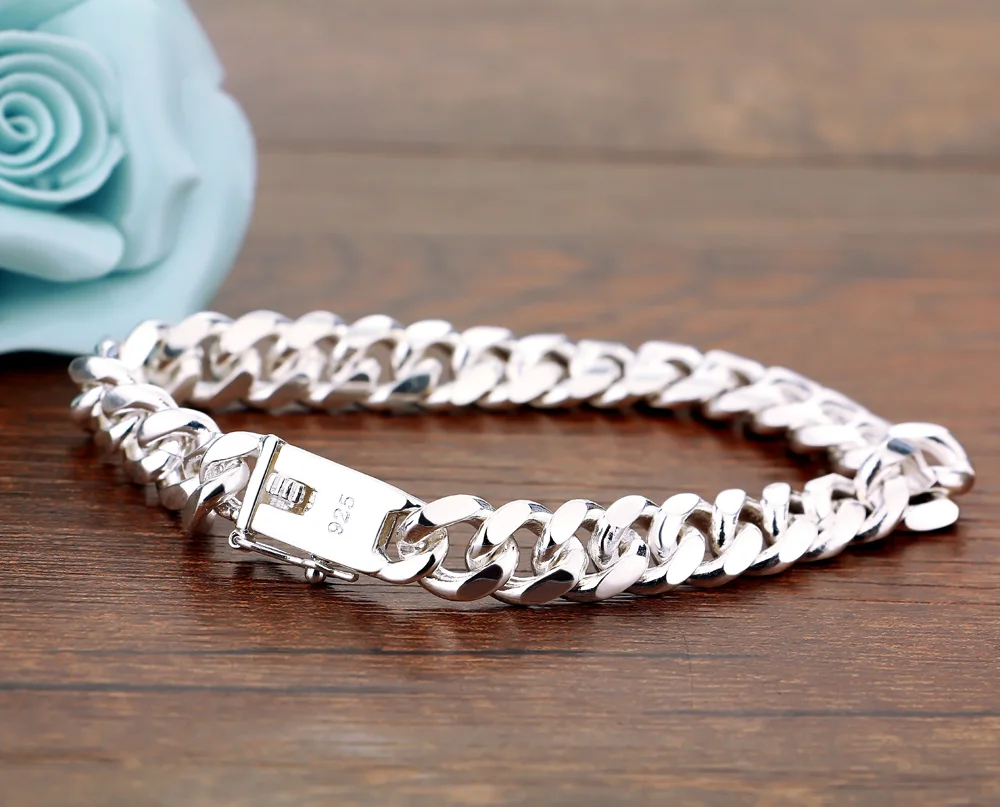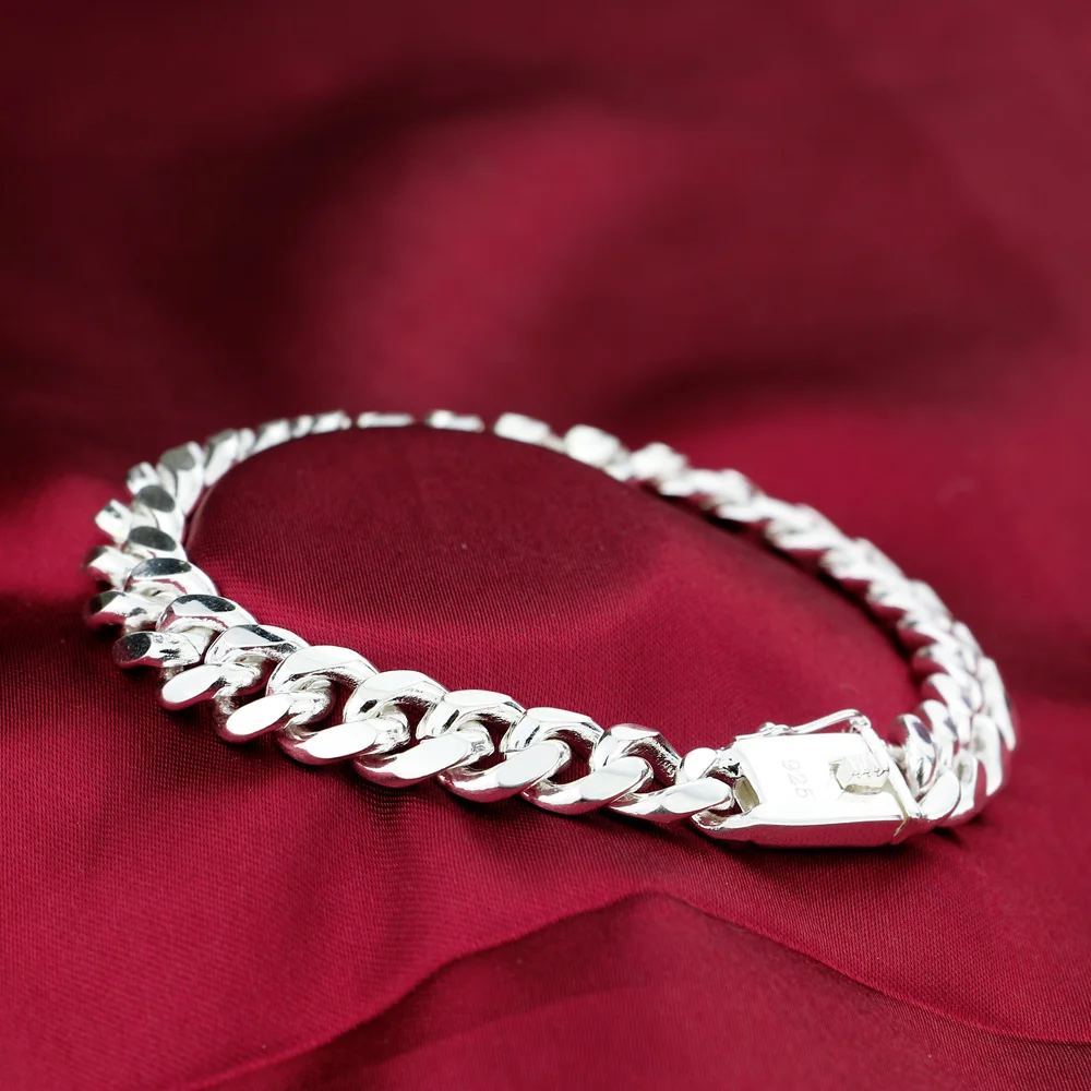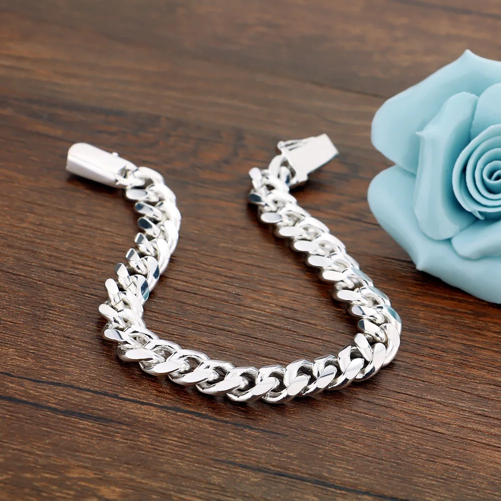 Модные 925 стерлингового серебра браслет для мужчин мужские звенья в Кубинском стиле ручная цепная аксессуары пара личность мужские ювелирные изделия, подарки на Рождество