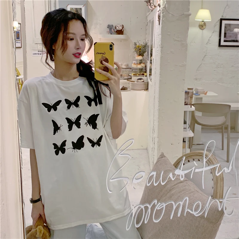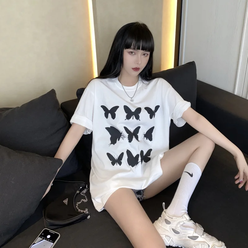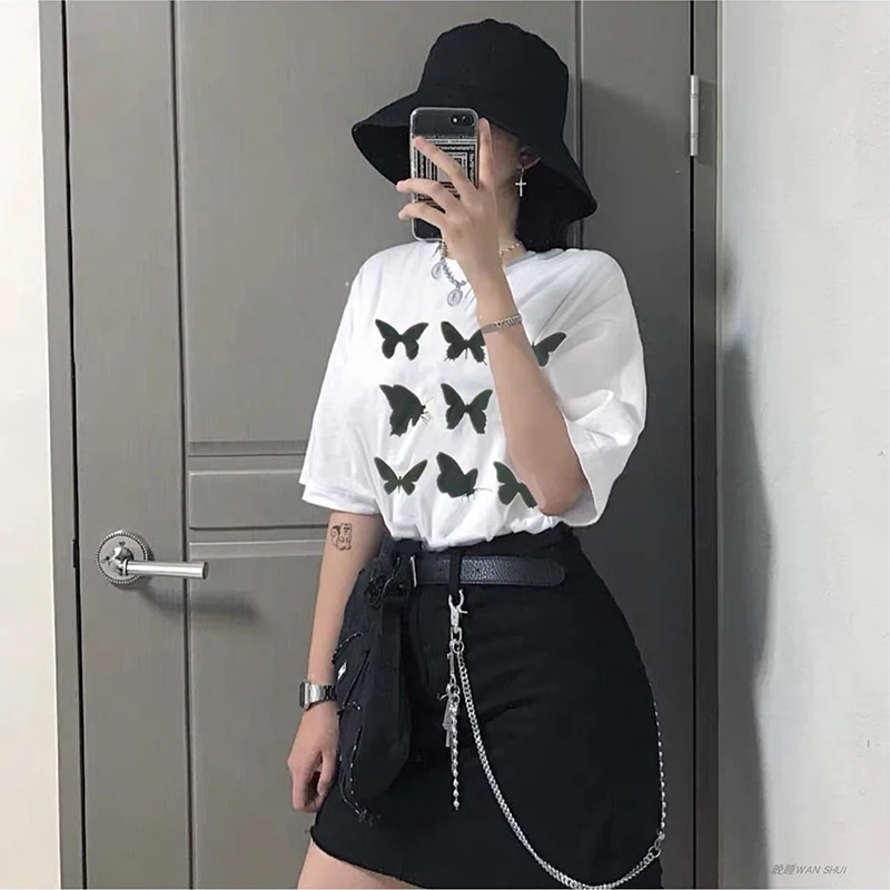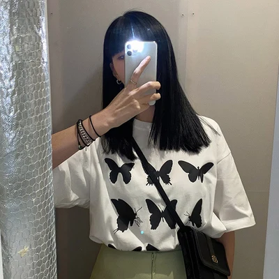 Футболка женская с принтом бабочек и коротким рукавом, в стиле Харадзюку