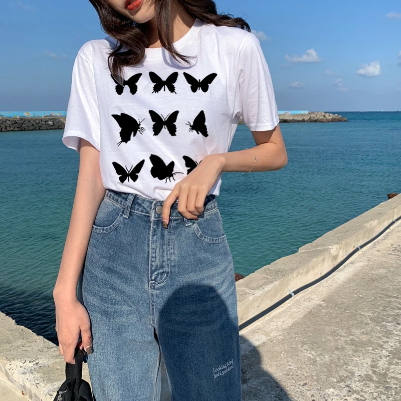 Женская футболка Harajuku, Забавный винтажный топ с рисунком бабоче...