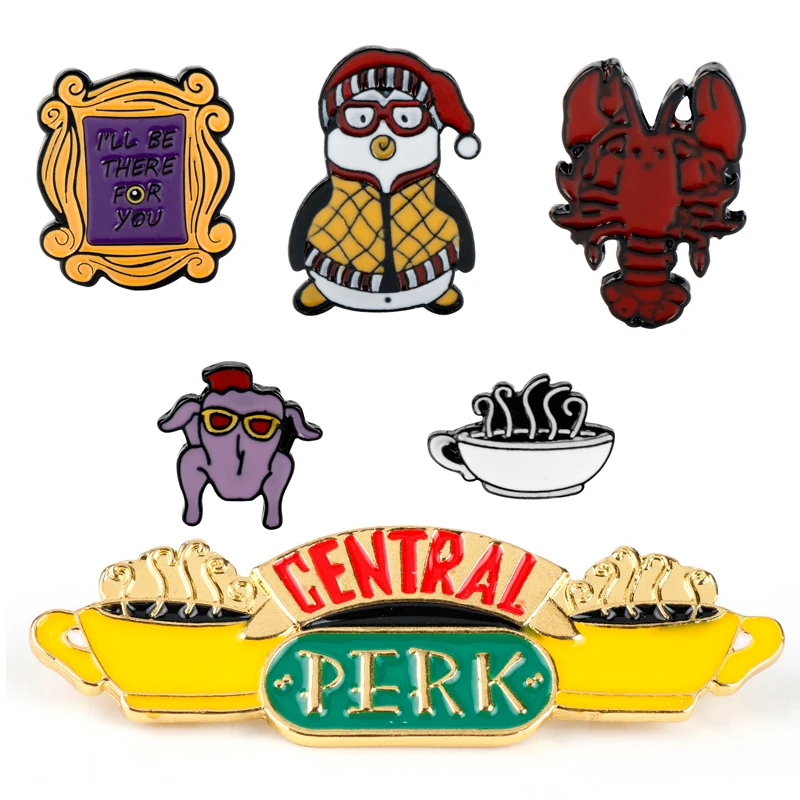 7 шт.компл. ТВ Друзья Брошь, эмалированный штифт Пингвин Центральный парк Кофе чашки Моники двойной дверная рама Омаров брошки и булавки для воротника