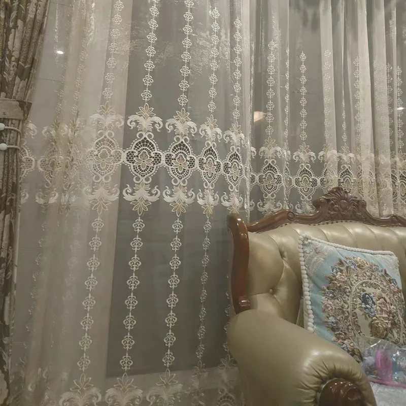 Европейские полые прозрачные шторы с вышивкой для гостиной, элегант...