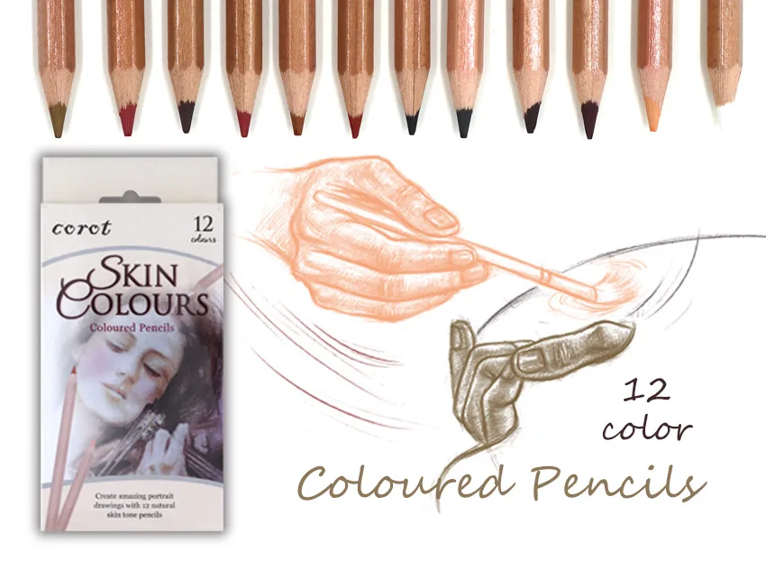 Мягкие пастельные карандаши 12 цветов окрашивание кожи портретПейза...