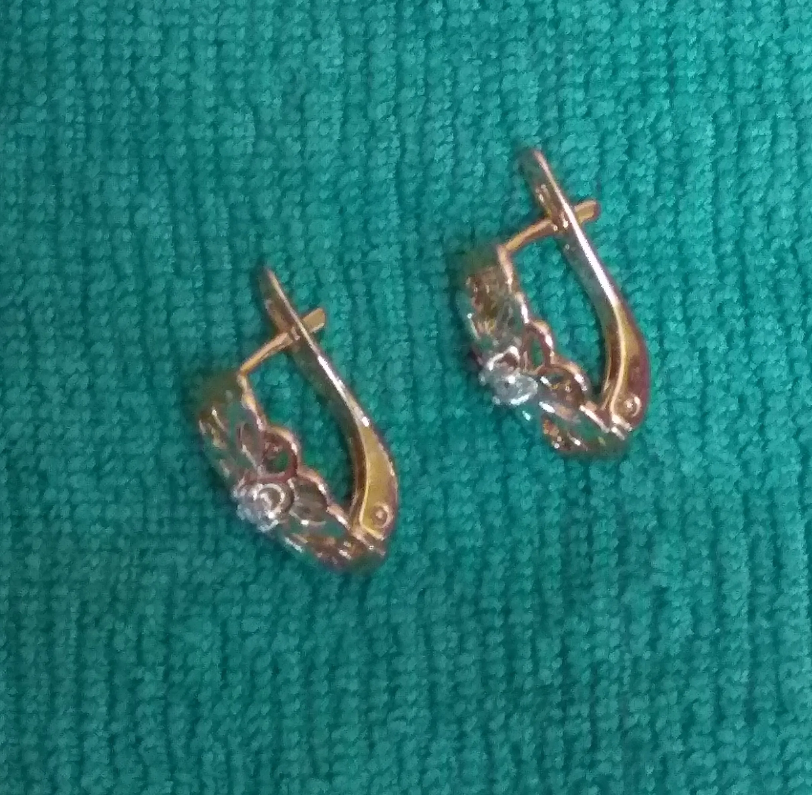 Миленькие сережки. Цвет очень похож на золото. Один замочек не держит. Может чуть искривились при транспортировке, не знаю, если муж выправит, буду носить.