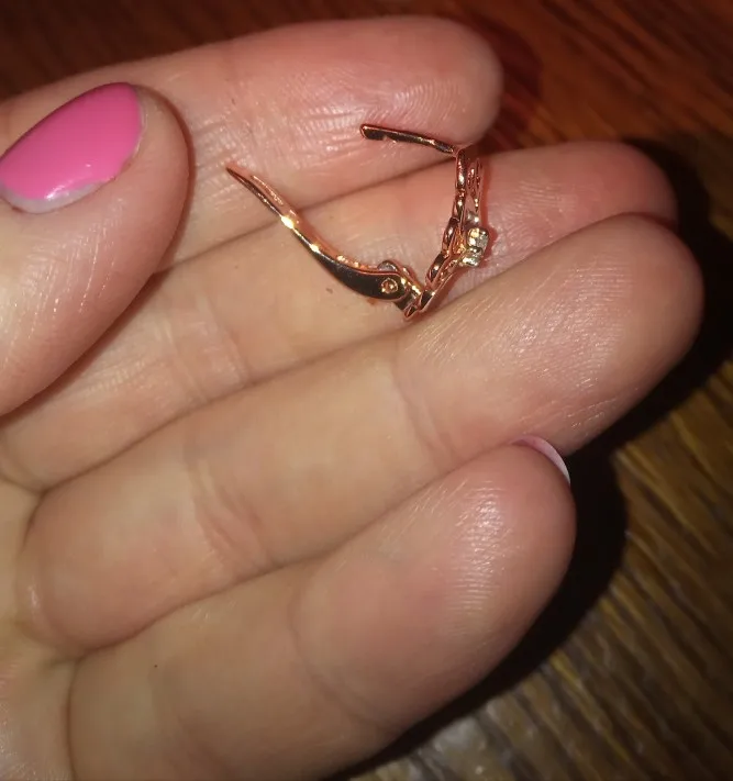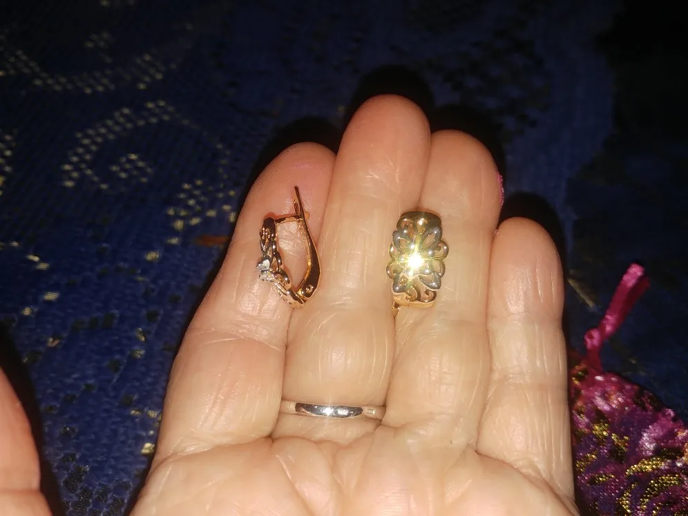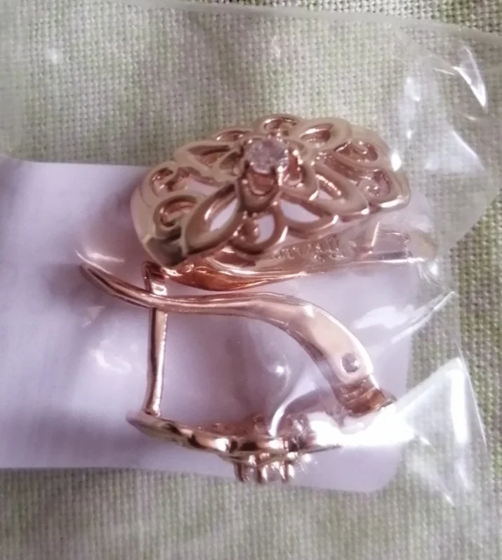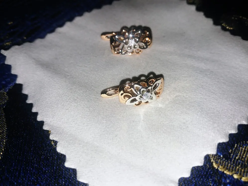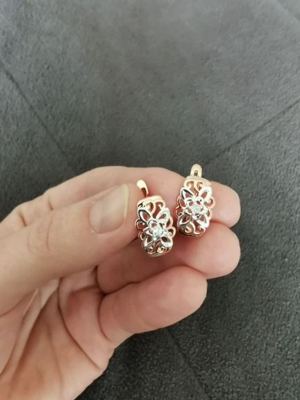 Серьги очень красивые, выглядят изящно, сделаны аккуратно. По цвету действительно, как белое и розовое золото. Застёжка кажется надёжной. Упаковано было качественно, плюс - в красивом подарочном пакетике. Продавец заказ отправил сразу же после оплаты, без задержек. До Мурманской области посылка шла ровно месяц, отслеживалась. Товаром довольна, рекомендую - и серьги и продавца.