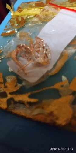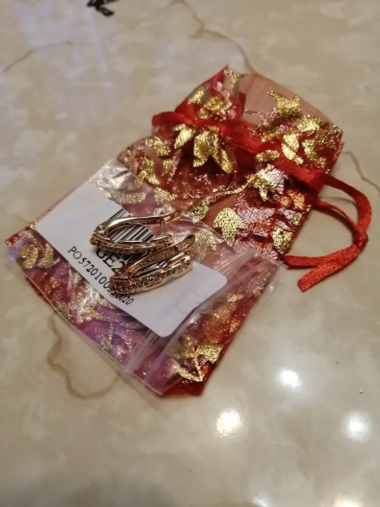 Серьги очень красивые. От золота не отличить. Заказывала к золотому кольцу. Получился полноценный комплект. Сережки упаковали в красивый подарочный мешочек. Доставки три недели.