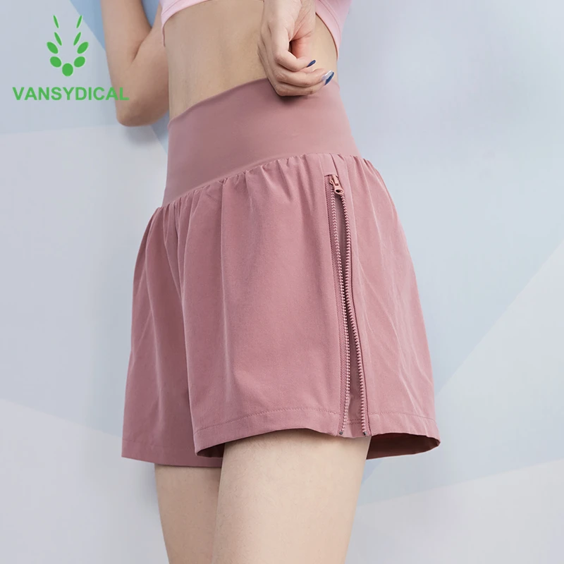 Vansydical летние спортивные шорты для бега 2 в 1 женские шорты на молнии для занятий йогой быстросохнущие сетчатые шорты для фитнеса