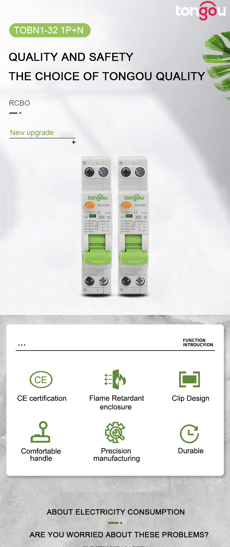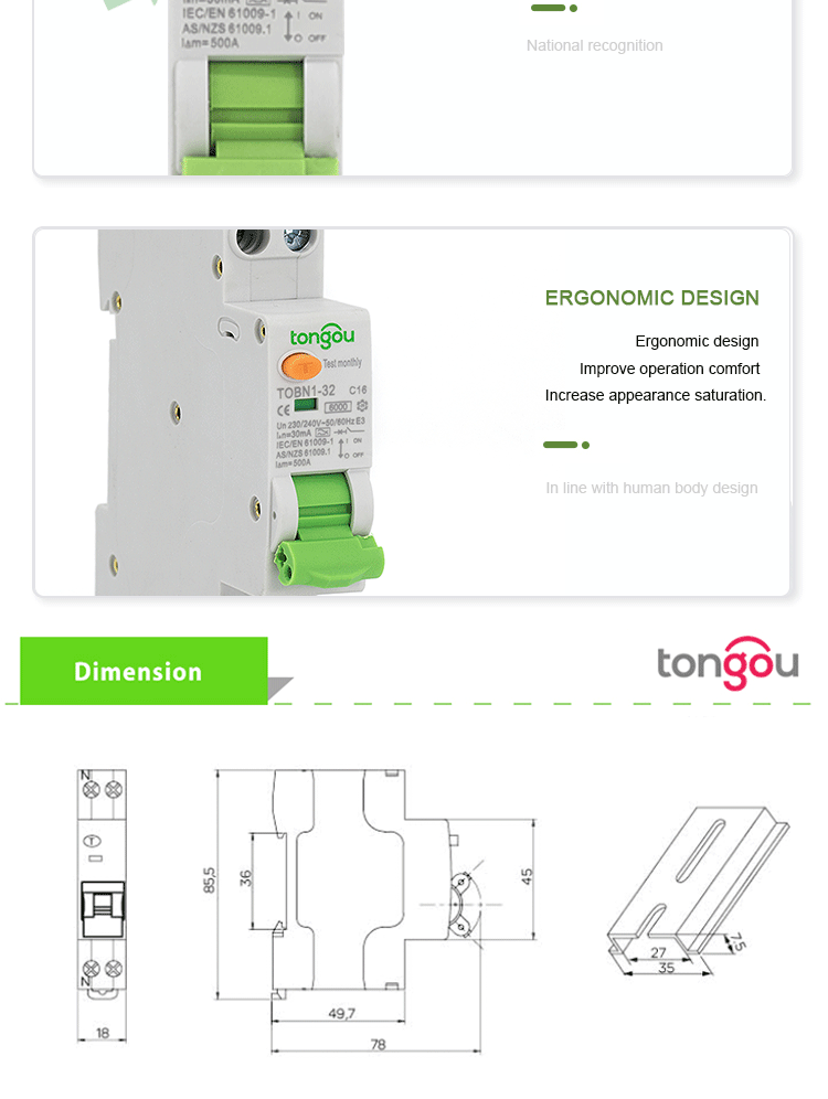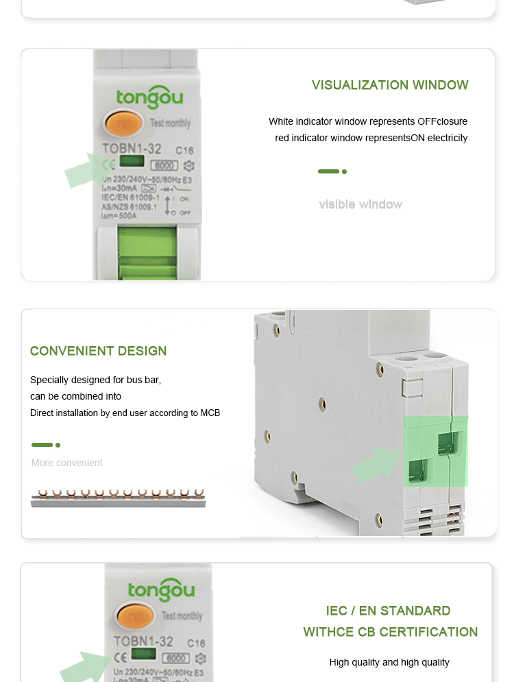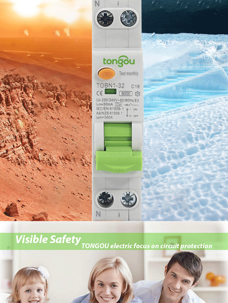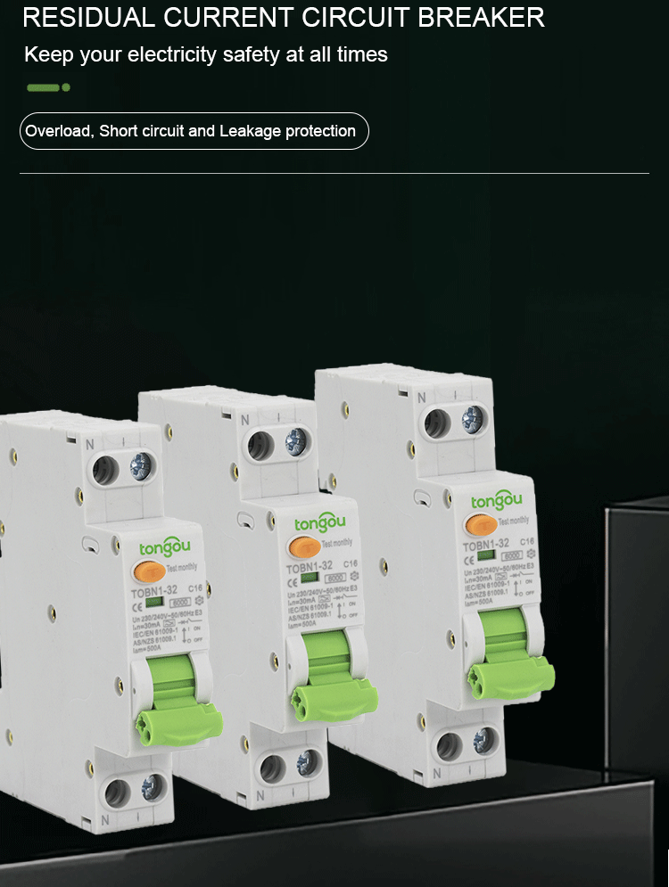 Автоматический выключатель, 18 мм, 16 А, 10 мА, 30 мА, 100 мА, с защитой от перегрузки по току и утечки