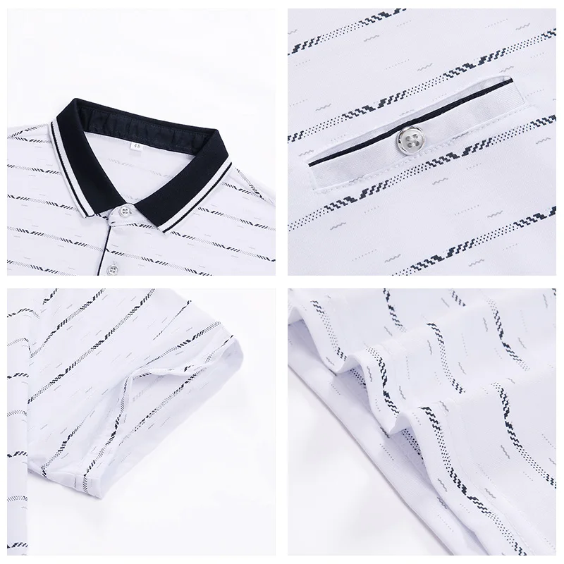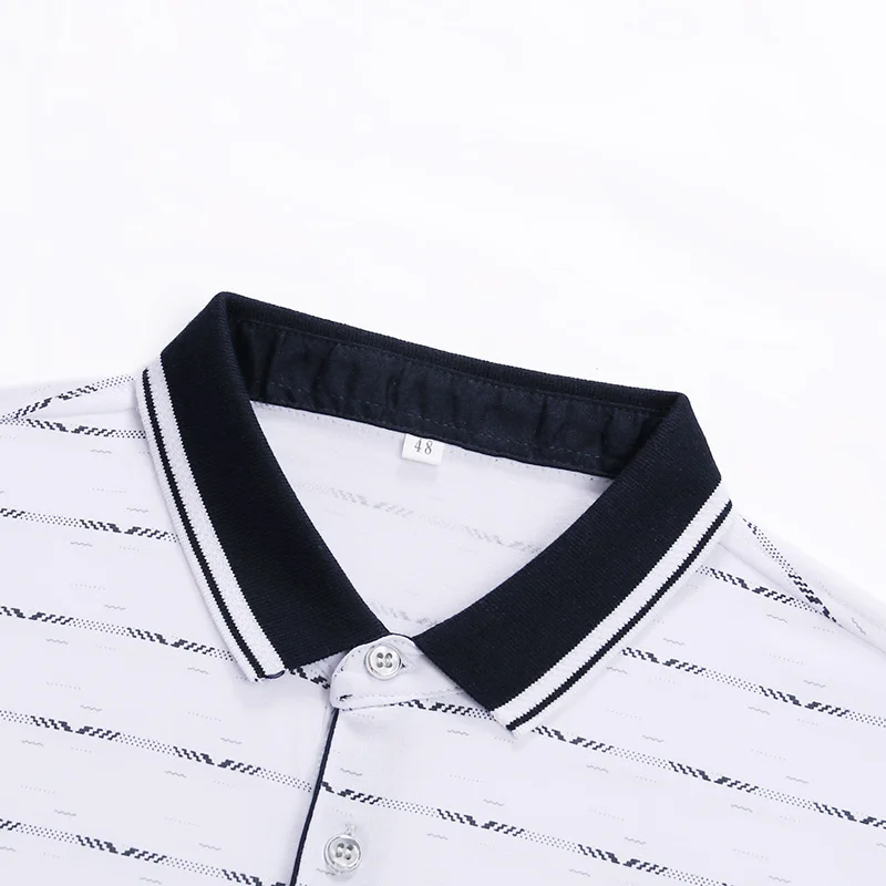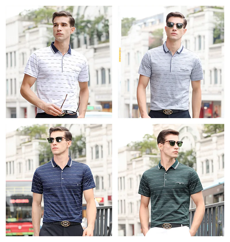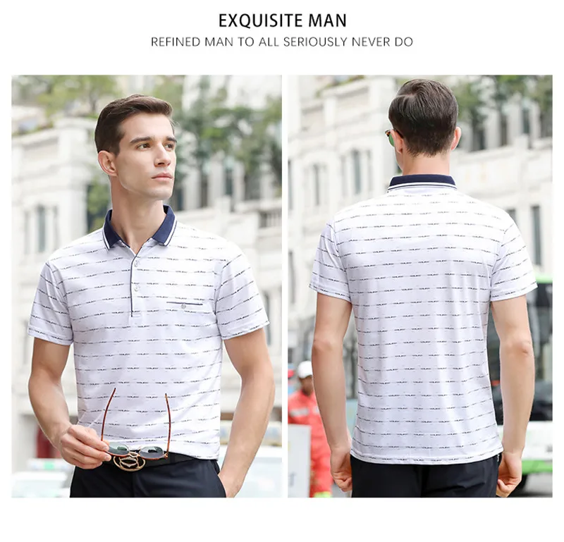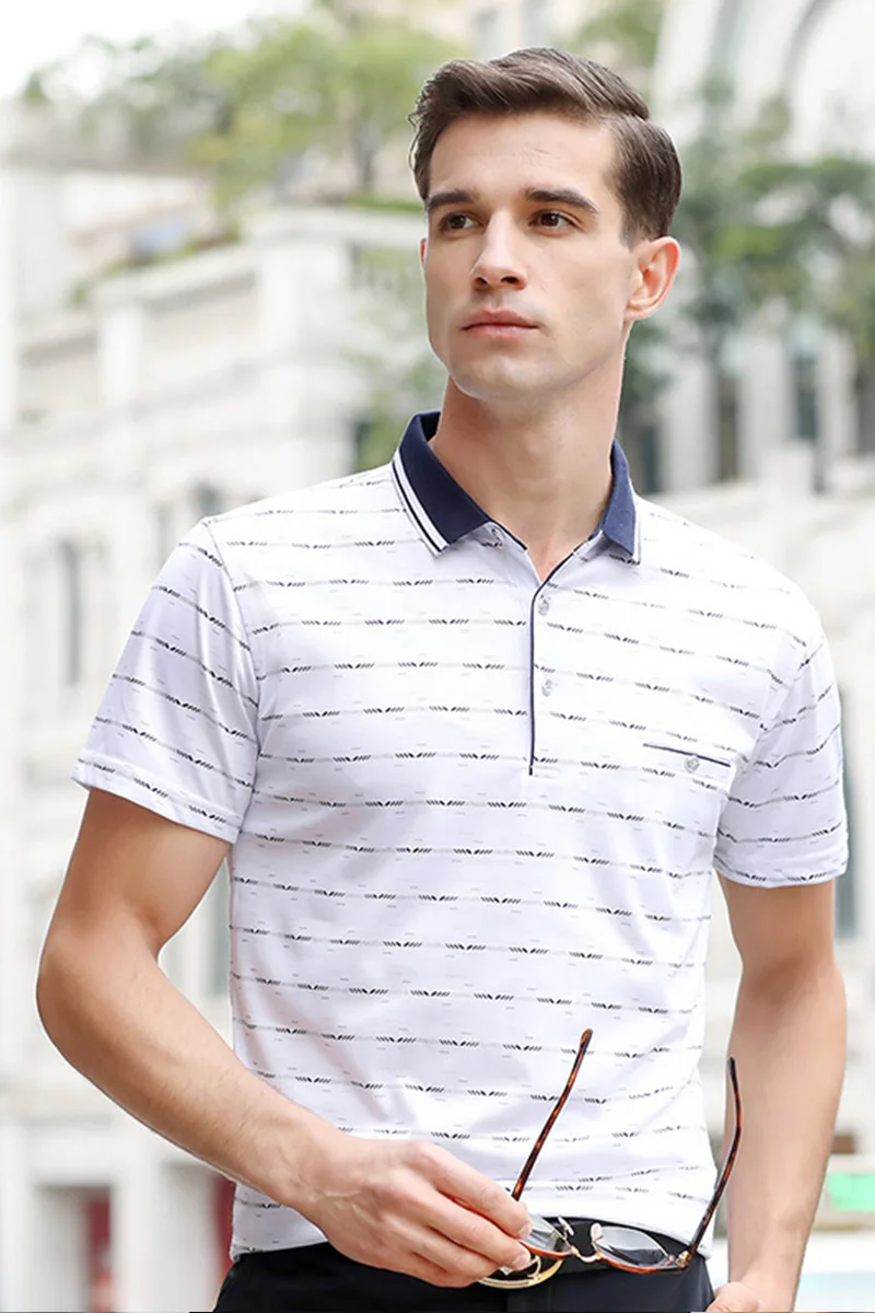 Мужская футболка с коротким рукавом, отложным воротником и полосками