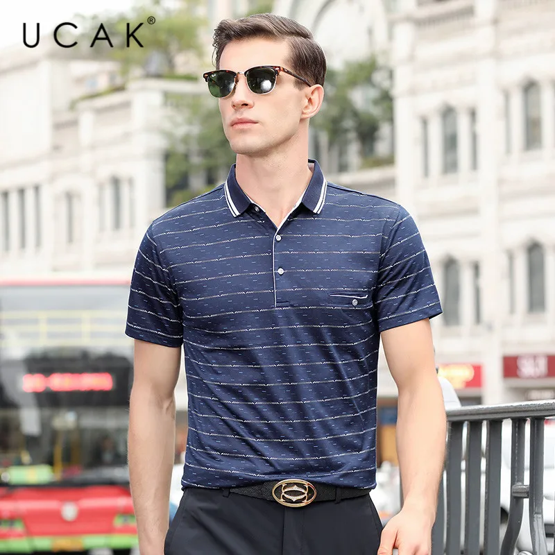 Бренд UCAK, лето 2020, новое поступление, уличная футболка с отложным воротником, Homme, полосатая футболка с коротким рукавом, мужская одежда, U5244