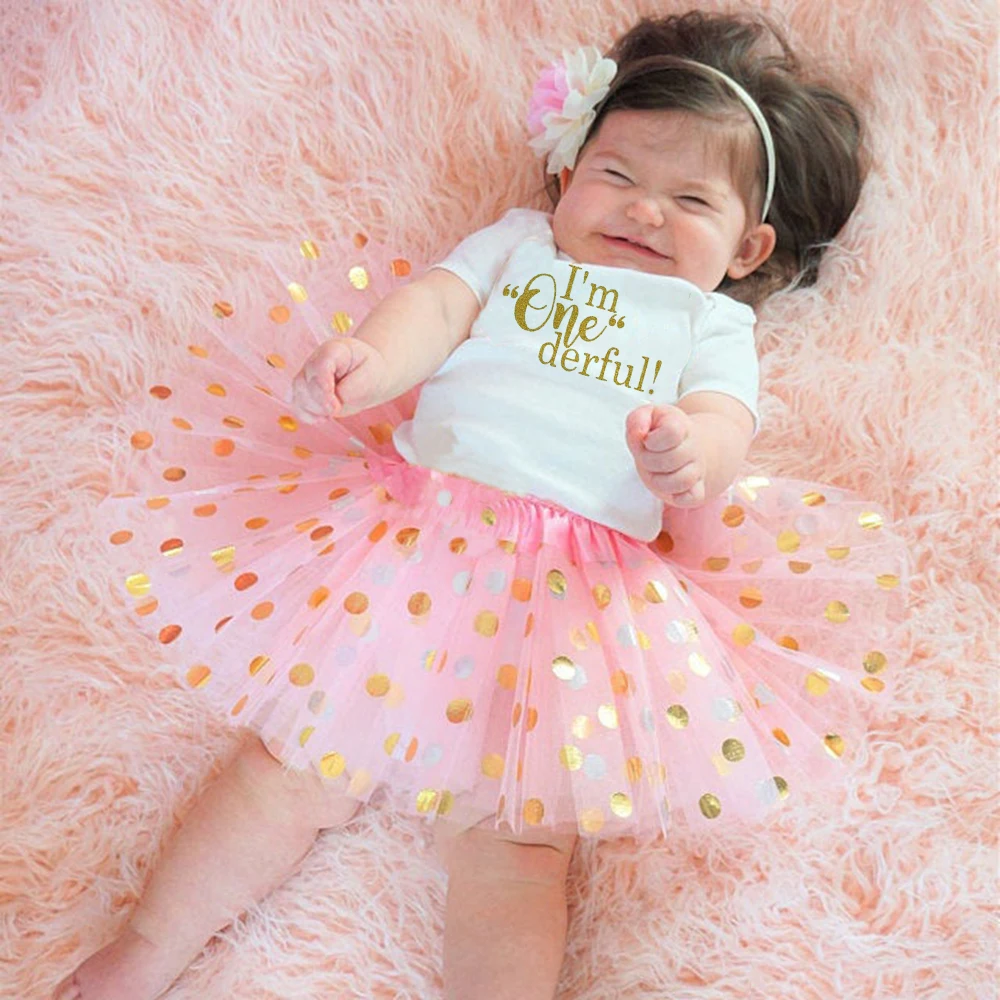 I'm Onederful/нарядная розовая юбка-пачка на день рождения для маленьких девочек вечерние комплекты с платьем, костюмы для девочек от 0 до 12 месяцев, Прямая поставка