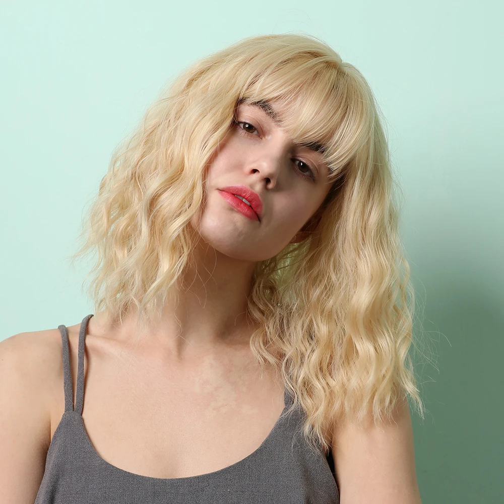 ESIN синтетический парик Боб блонд с челкой парики средней длины волосы парики для женщин Лолита косплей и ежедневного использования термостойкие