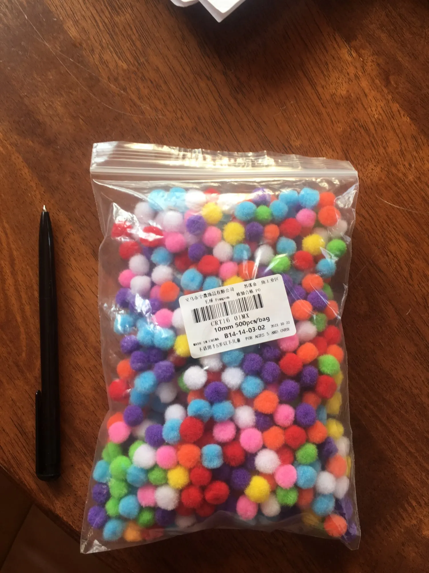 Очень быстрая доставка, всего две с половиной недели. Помпончики замечательные, цвета разнообразные и равномерные, нет изобилия одних и недостатка других. Теперь обязательно куплю ещё и большего размера.