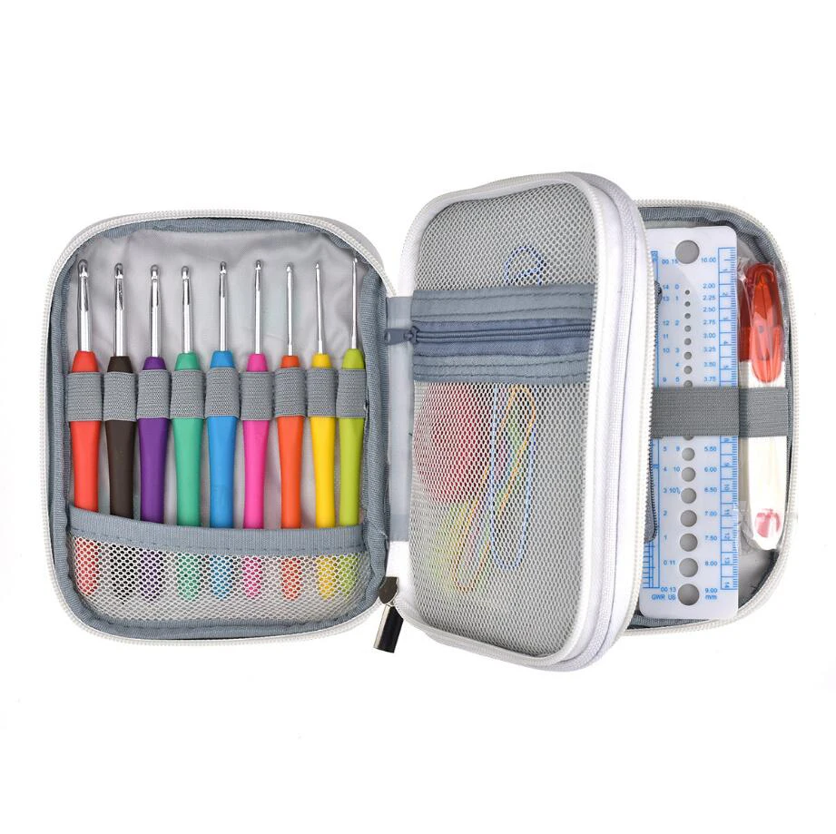 Набор крючков для вязания с чехлом 14 видов стилей, игла для рукоделия, ножницы, маркеры, инструменты для шитья