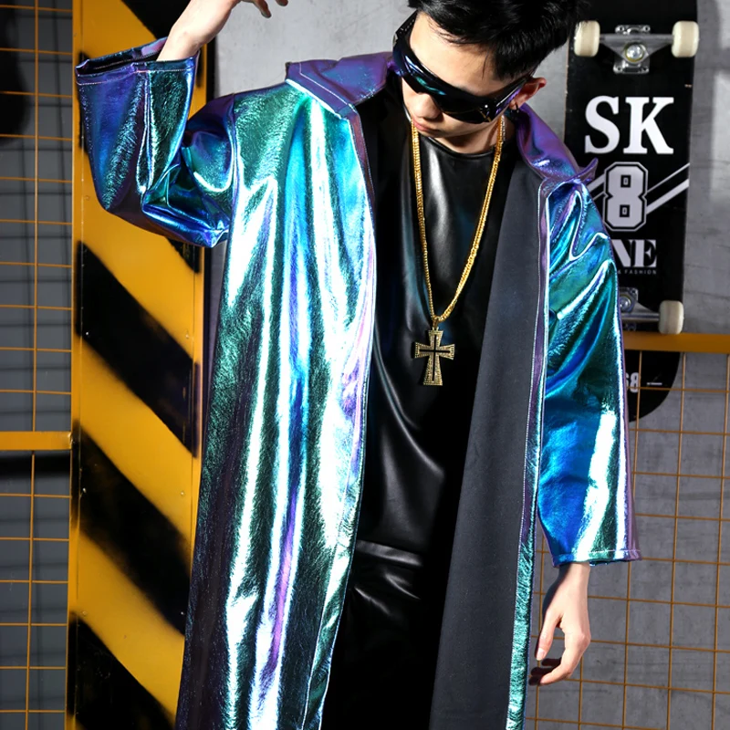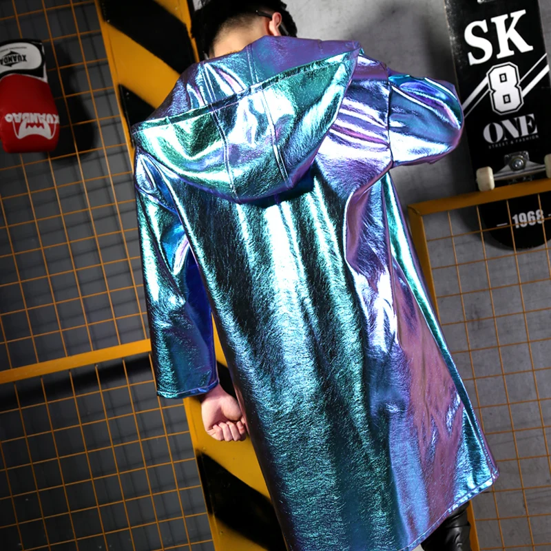 Плащ мужской, с капюшоном, из искусственной кожи, для ночного клуба, бара, джаза, танцев, драм, рок, DWY3485