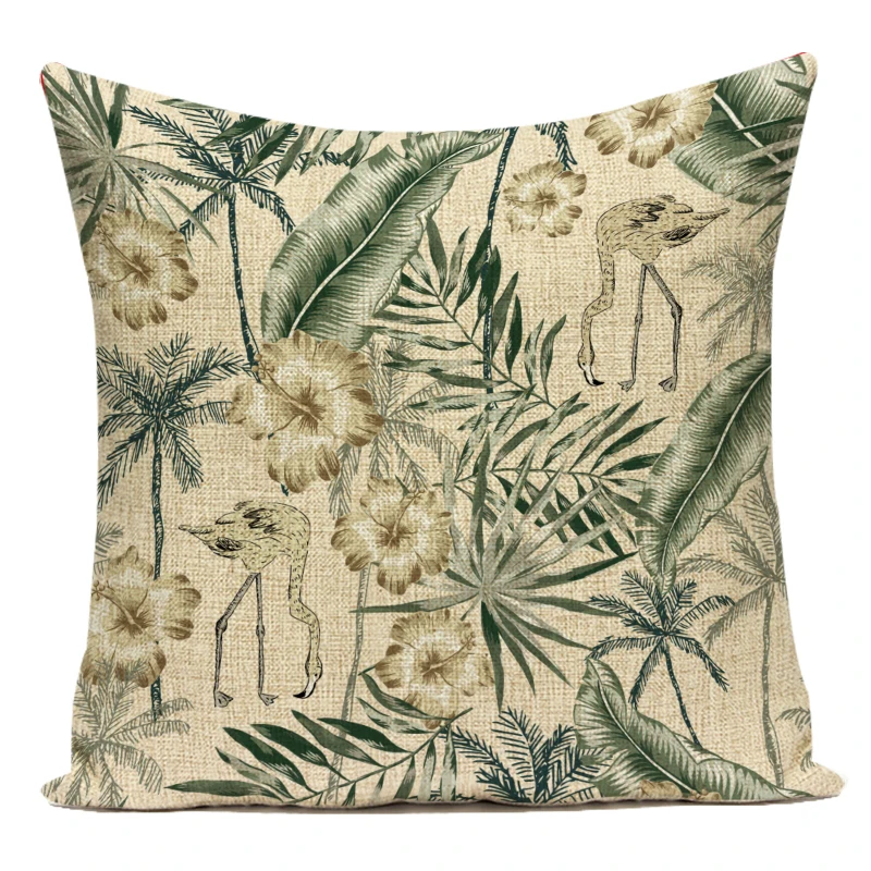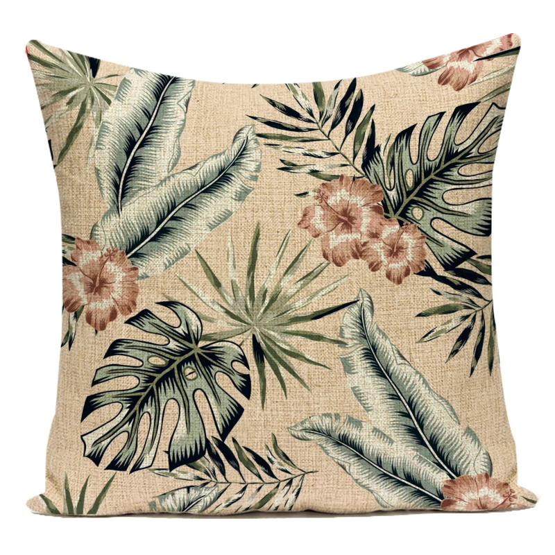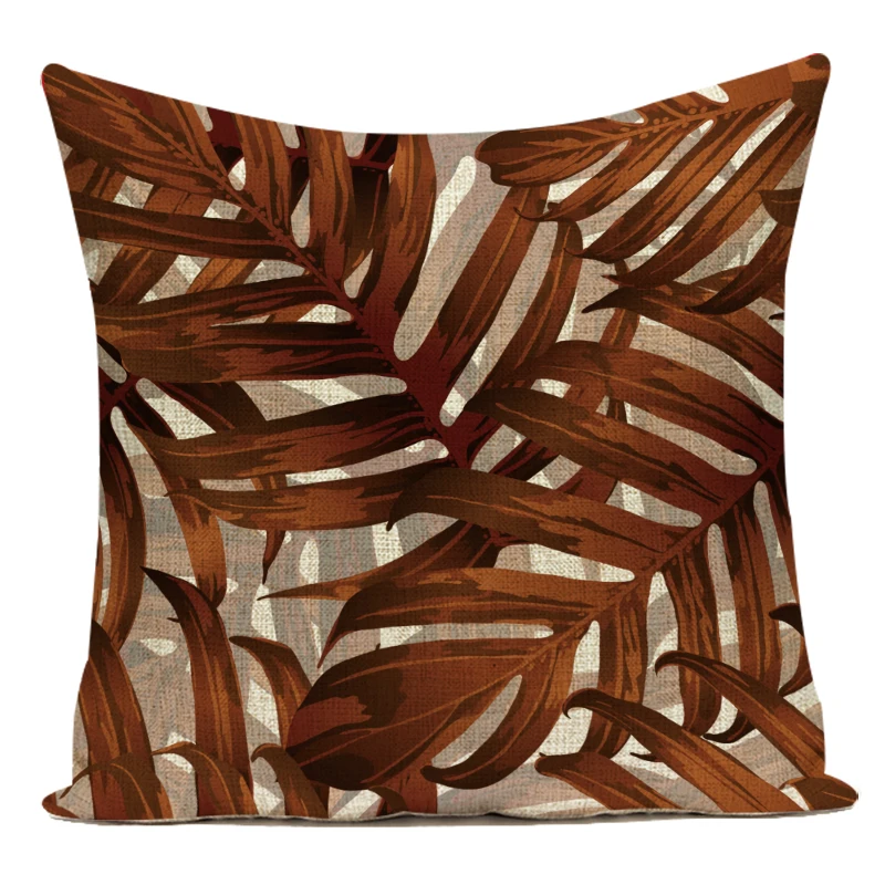 Декоративный чехол для дивана, наволочка из полиэстера с тропическими растениями, листьями пальмы, зелеными и коричневыми листьями, наволочка для гостиной