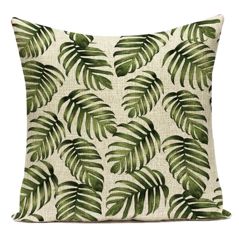 Декоративные подушки из полиэстера, тропические зеленые растения, л...