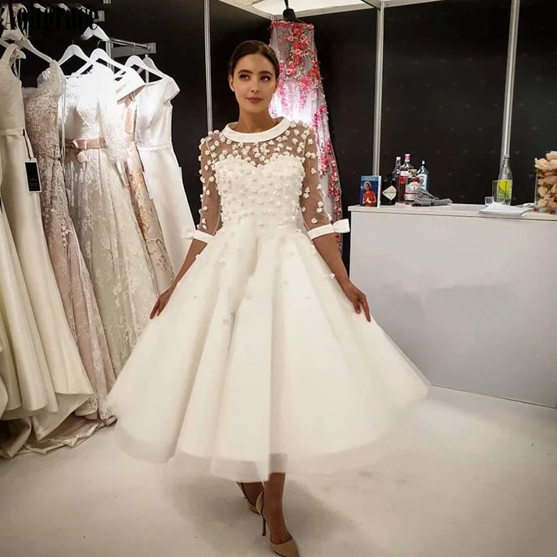 Женское ТРАПЕЦИЕВИДНОЕ свадебное платье It's yiiya, белое винтажное платье до середины икры с круглым вырезом, рукавами 2020 и поясом на лето 34