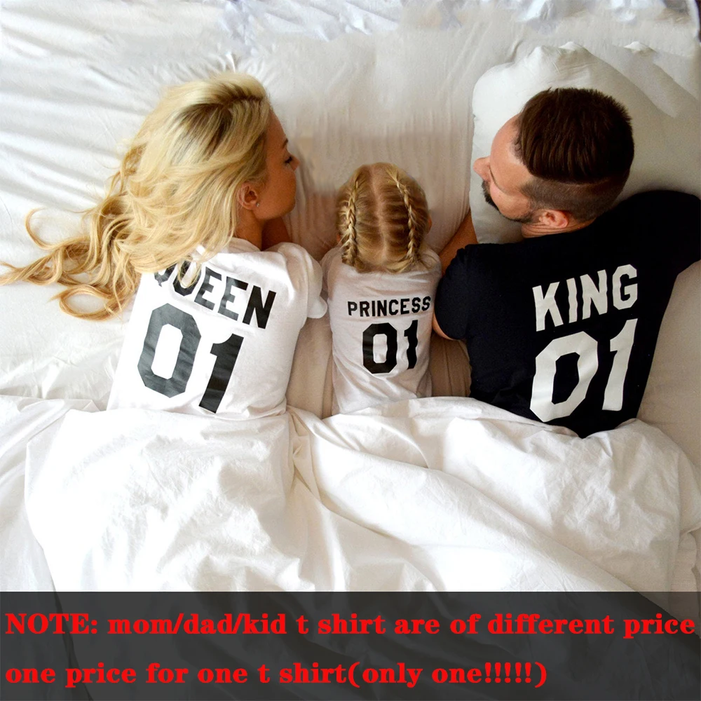 Одинаковые наряды для всей семьи, рубашки с король, королева, принцесса, 01, летняя футболка для отца, матери, дочери, семейные Топы с коротким рукавом, одежда