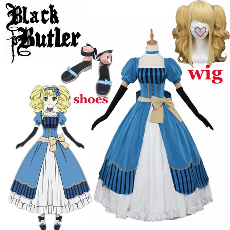 Черный Дворецкий Kuroshitsuji Элизабет мидфорд (Лиззи) роскошное платье для вечевечерние Косплей Костюм Полный комплект аниме Хэллоуин обувь Лолита