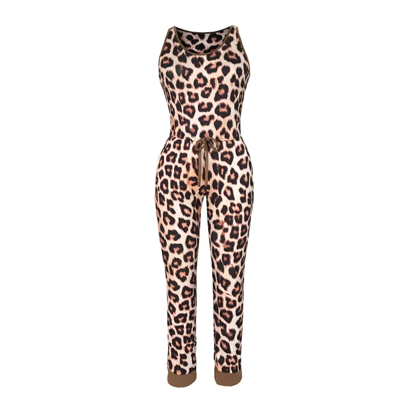 Женский леопардовый комбинезон, длинный комбинезон с принтом, на шнуровке, без рукавов, 2020