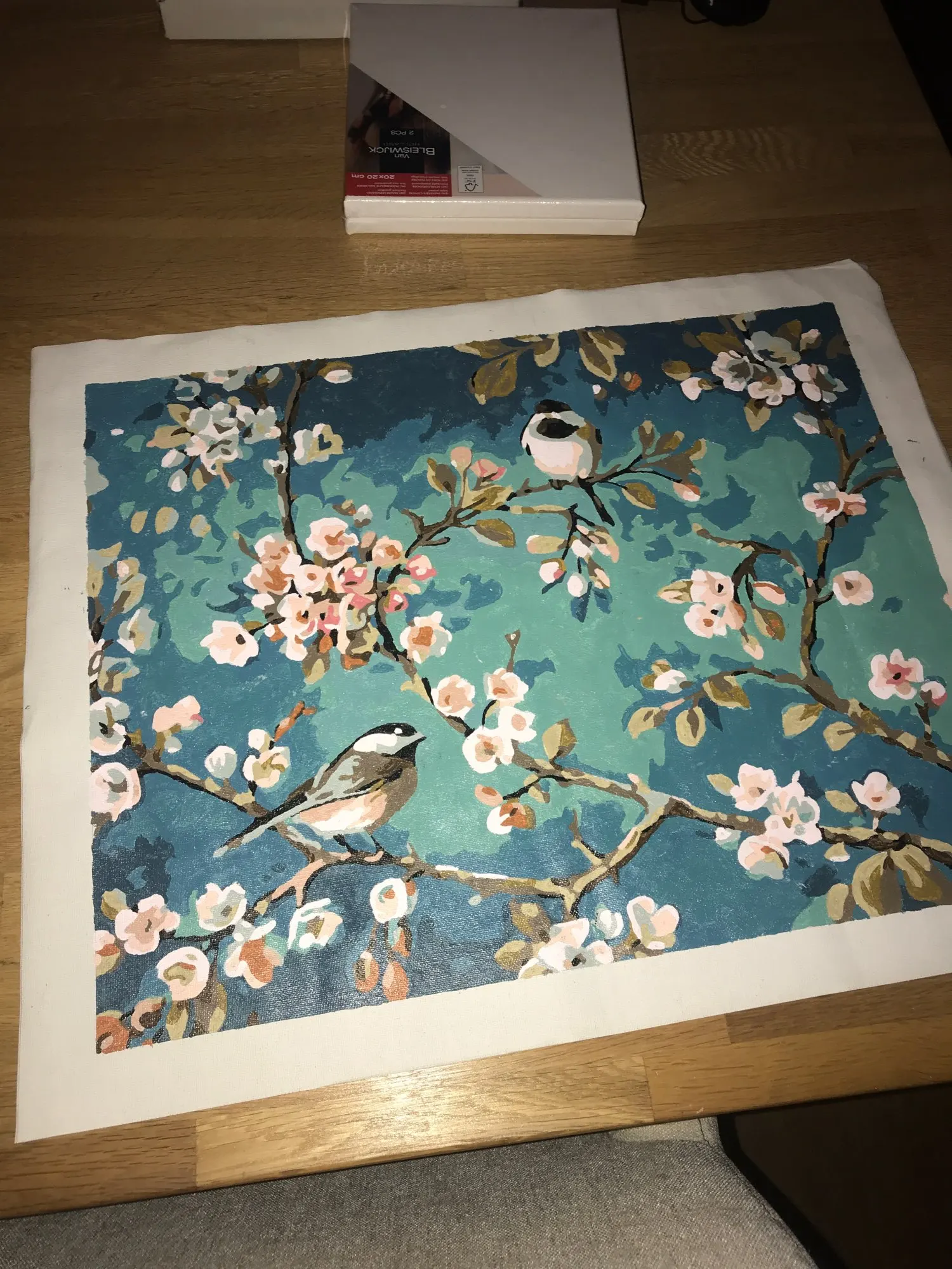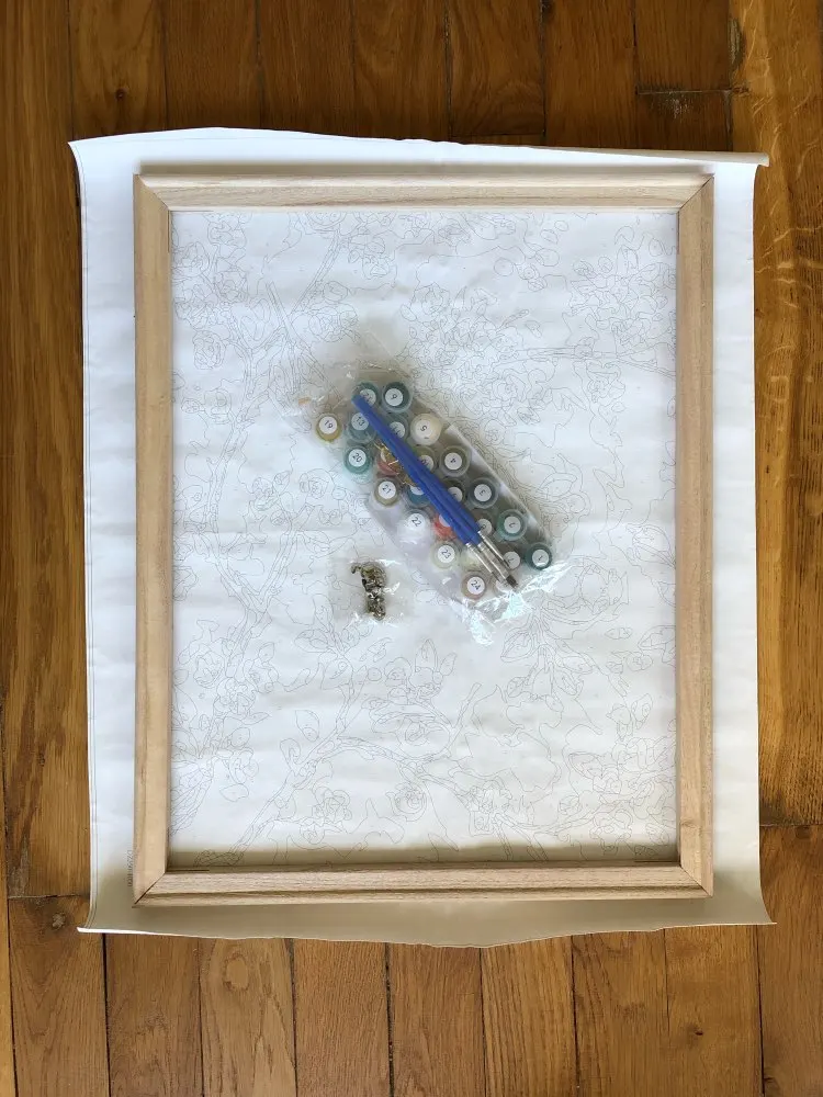 Очень хороший набор для рисования, со всеми цветами, и холст был правильно закреплен на раме. Только то, что может быть лучше, это цвет принта, если он более мягкий, его легче покрыть краской.