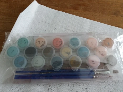 The package came in very late (more than 3 months). Paint is somehow good quality, but the brushes are not very much. Also the paint tubes had very little paint in them. For most numbers they are enough but some numbers needed more.