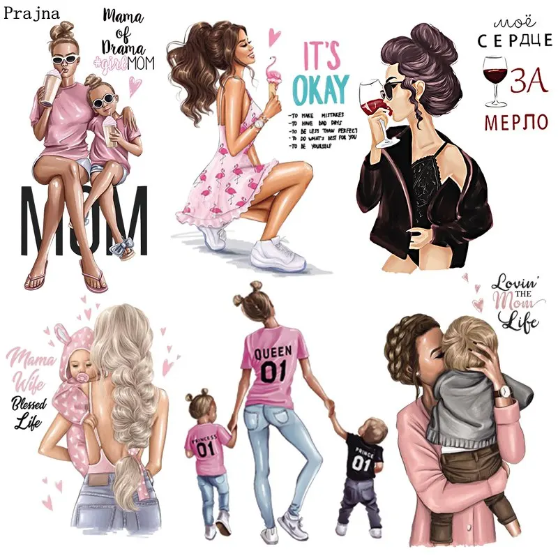 Нашивки Prajna для одежды, русские термальные наклейки для девочек для одежды, сделай сам, термотрансферные нашивки для леди, мамы, ребенка, термонаклейка