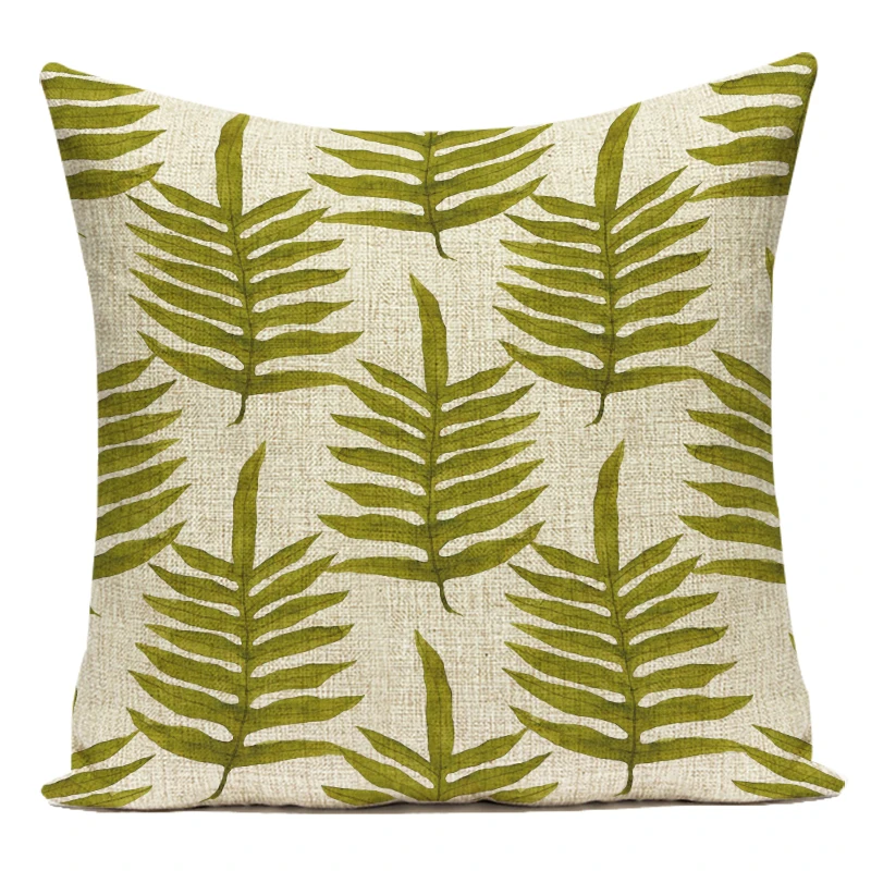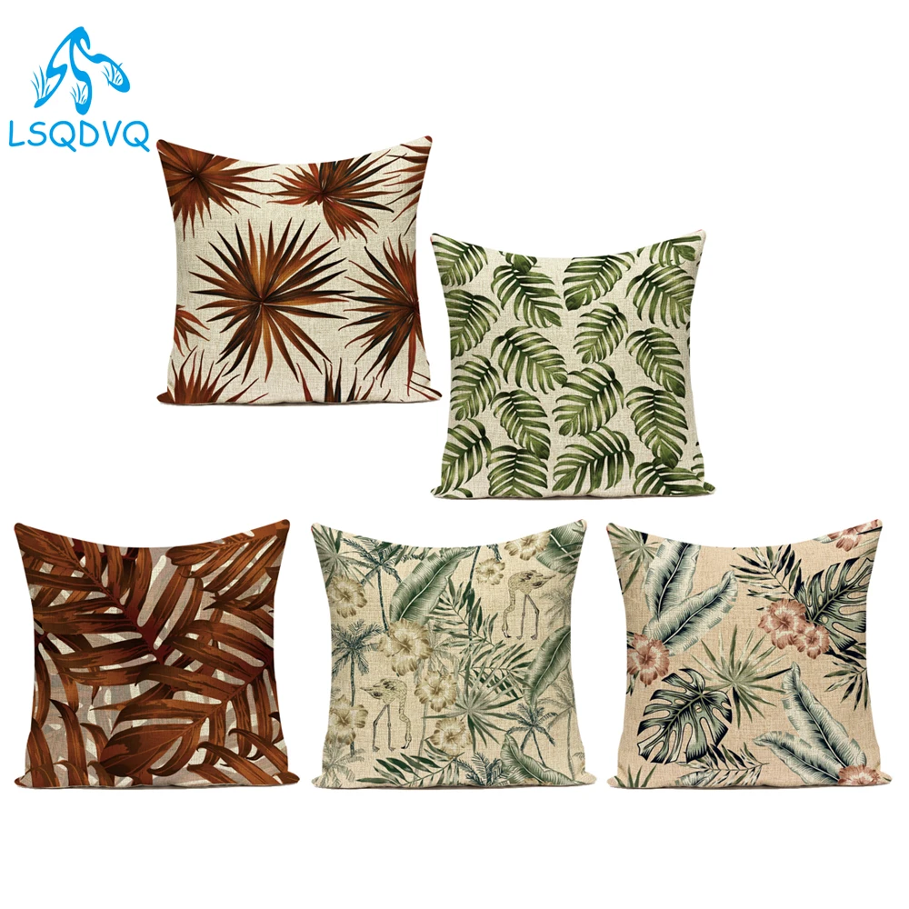 Декоративный чехол для диванных подушек, наволочка с зелеными тропи...