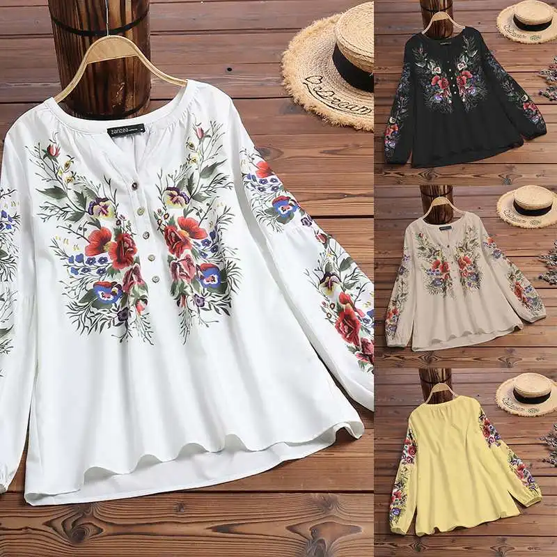 Рубашка Женская Весенняя с принтом, с длинным рукавом, в богемном стиле, 2021