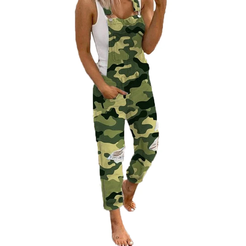 Комбинезон женский джинсовый с карманами, повседневный длинный рваный комбинезон с карманами