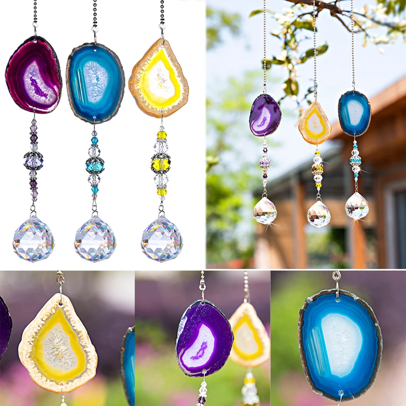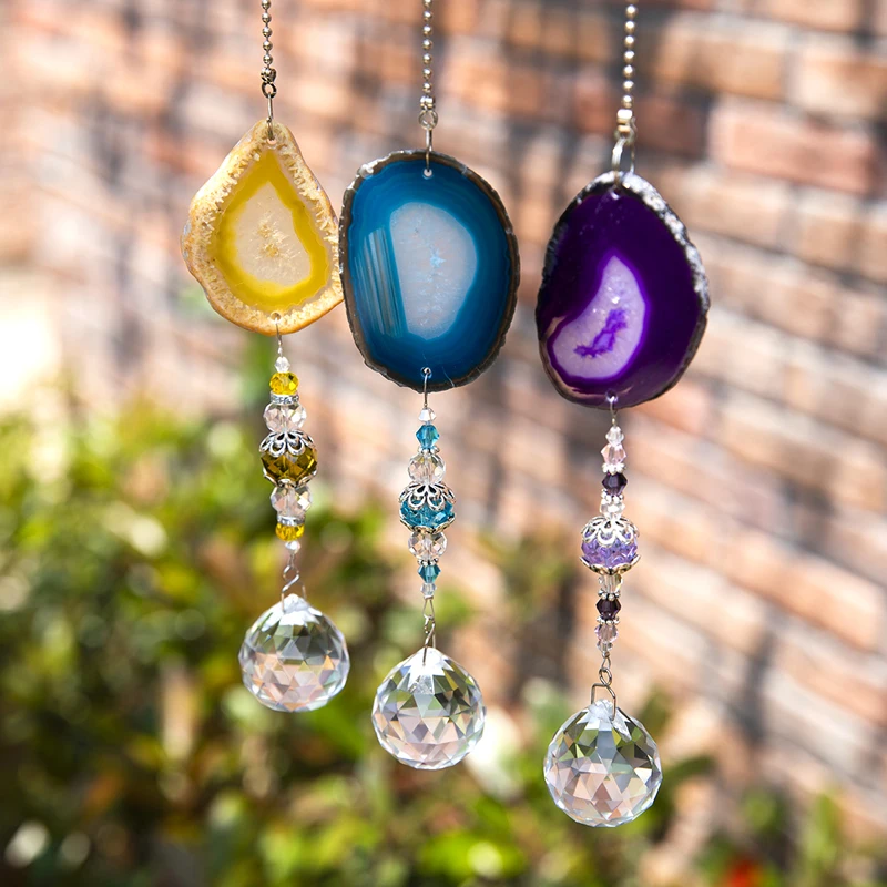 Материал: целебный Хрустальный подвесной орнамент, ручная работа из разноцветных срезов агата, подвески и проволочный завернутый хрустальный шар