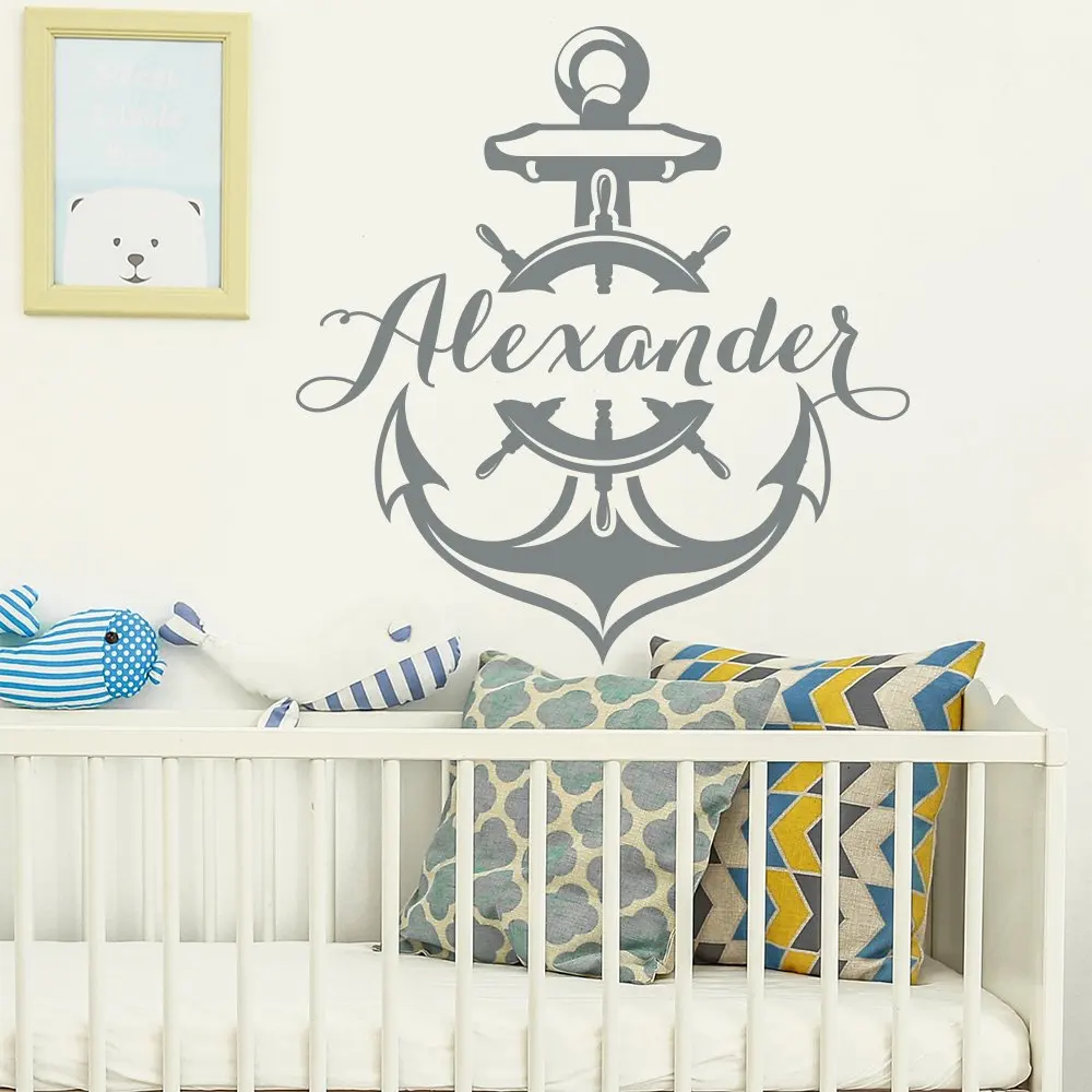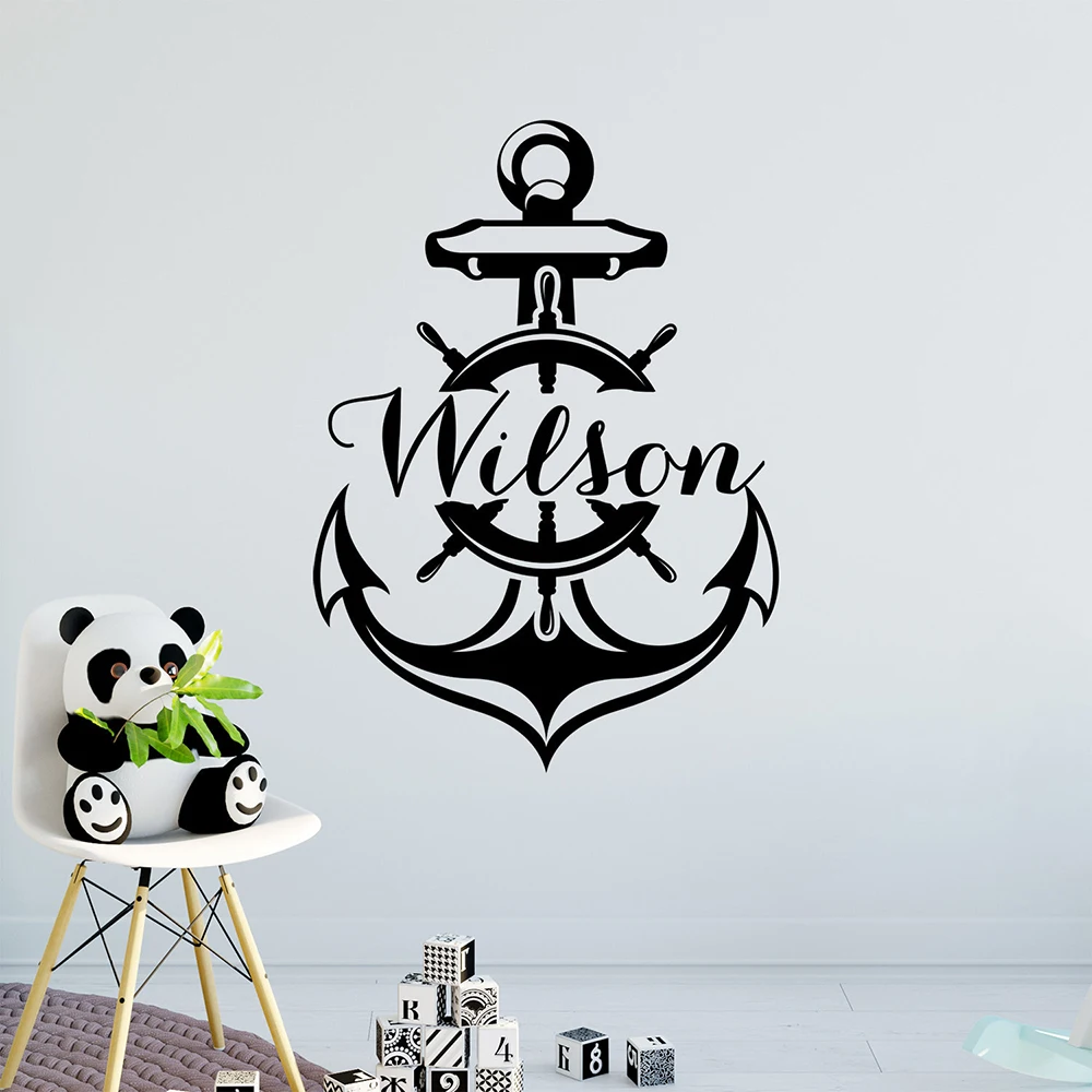 Наклейка на стену с именем мальчика, наклейка с именем якоря, виниловые наклейки на стену, Водные Наклейки для детской комнаты, фотообои X836